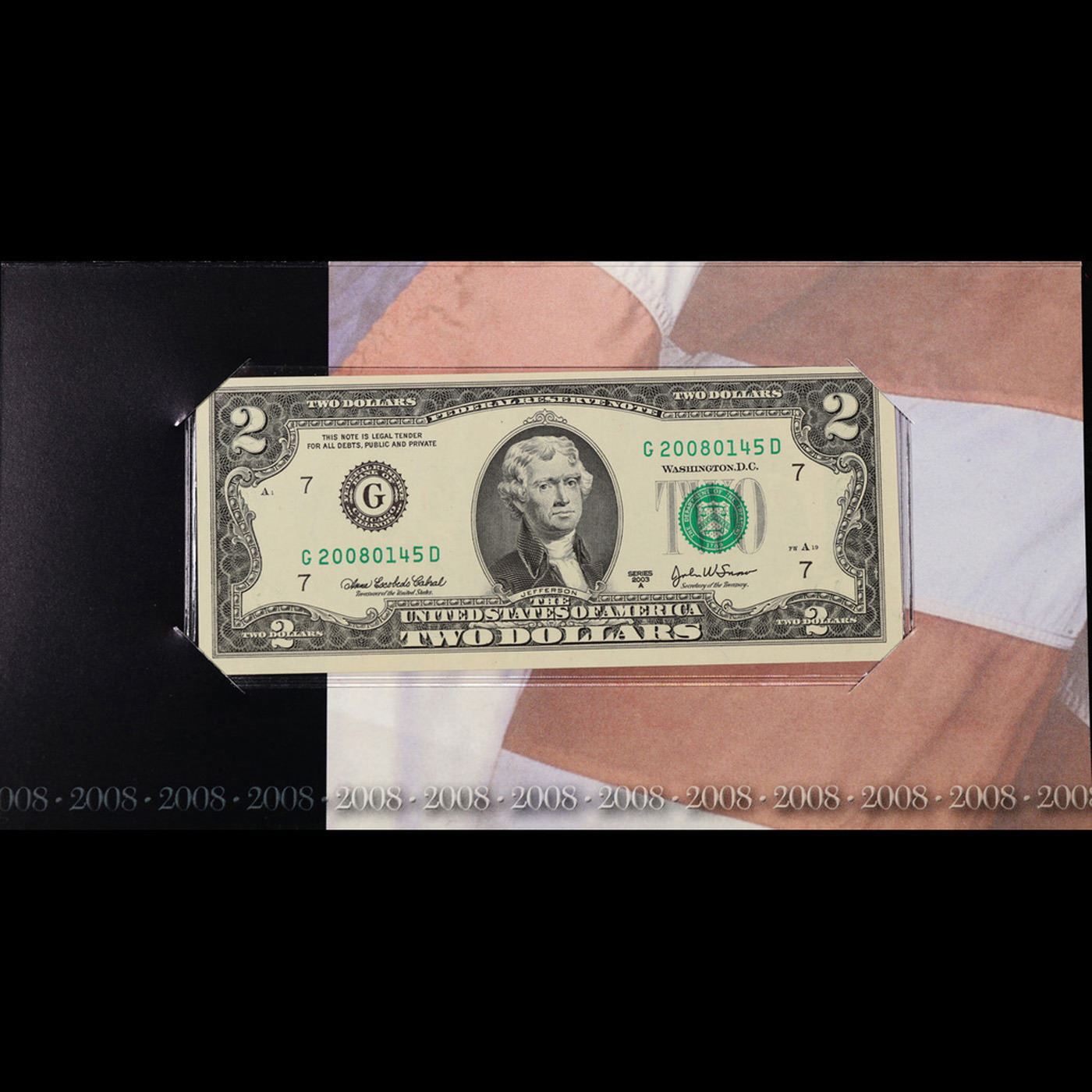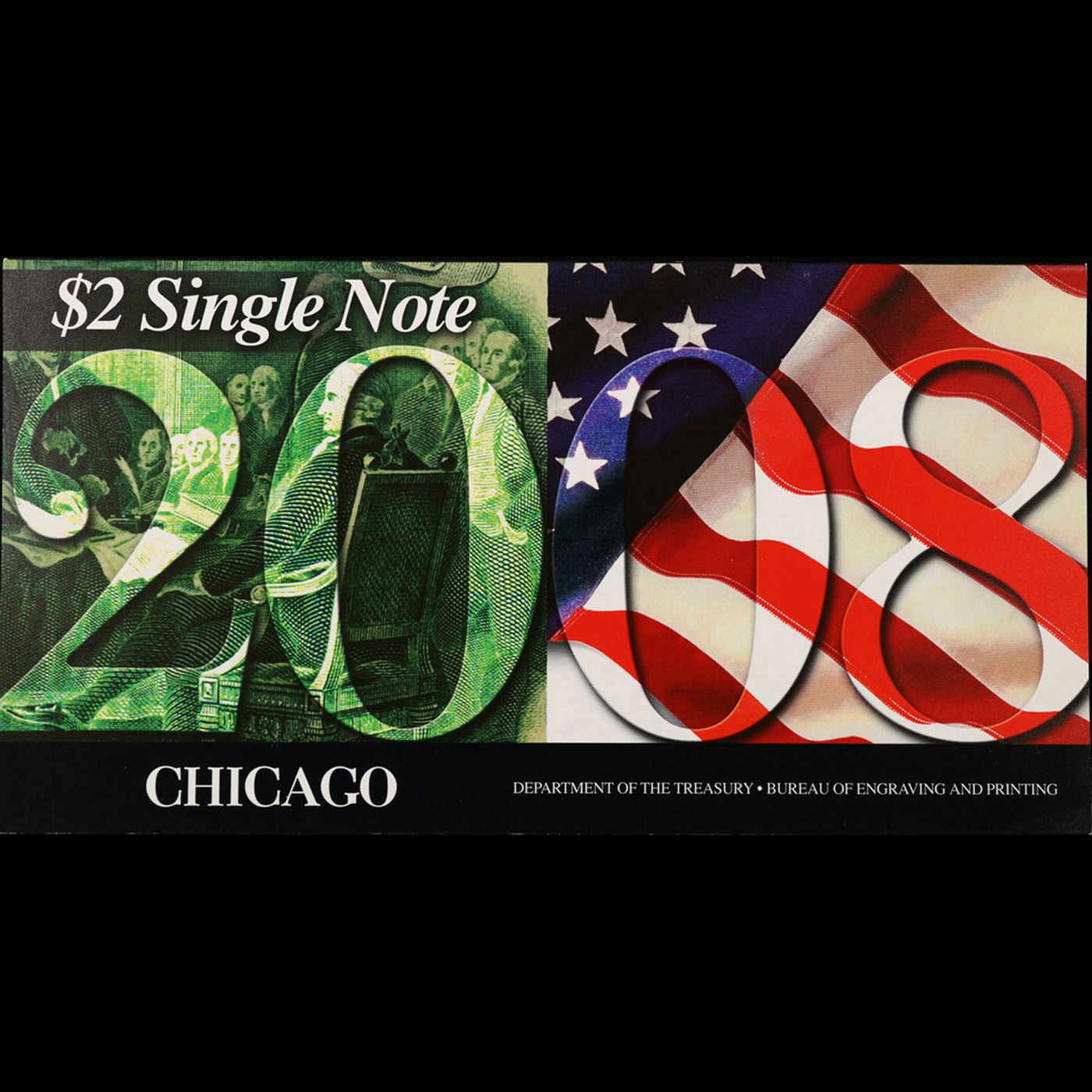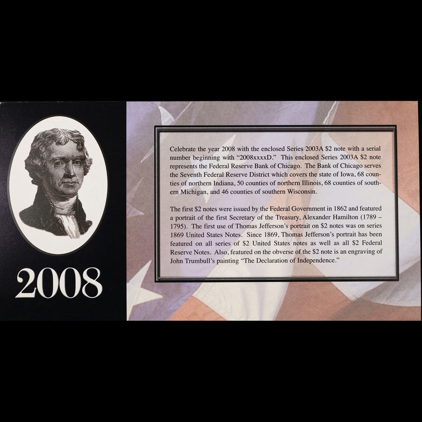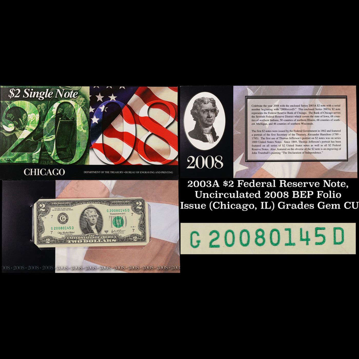 2003A $2 Federal Reserve Note, Uncirculated 2008 BEP Folio Issue (Chicago, IL) Grades Gem CU