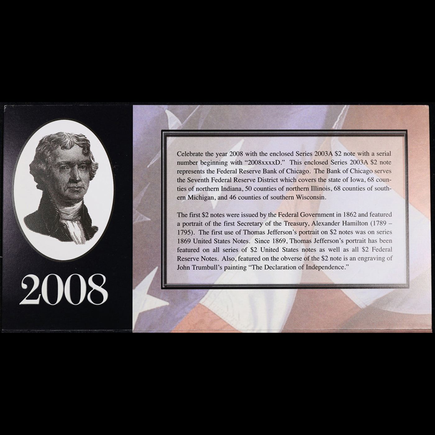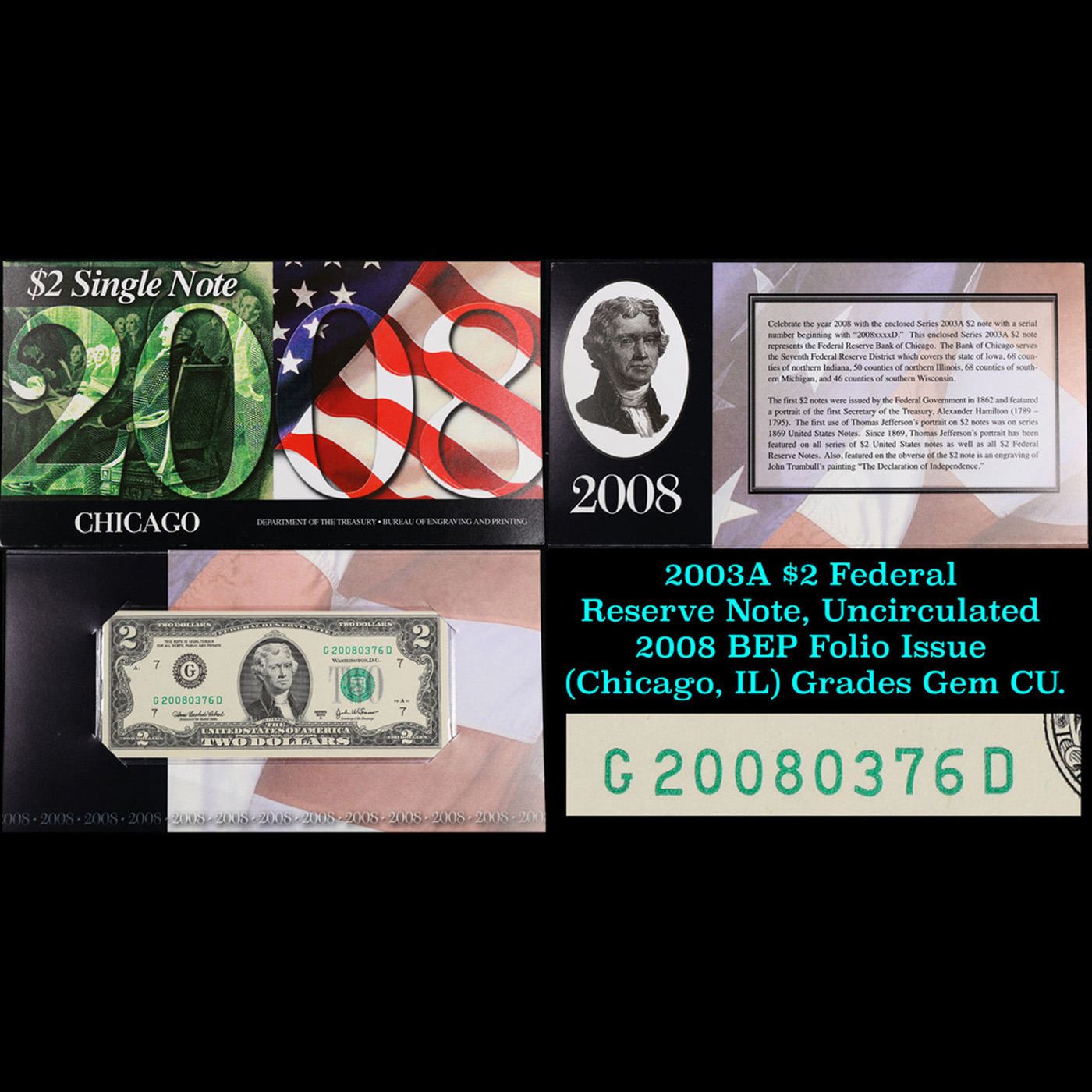 2003A $2 Federal Reserve Note, Uncirculated 2008 BEP Folio Issue (Chicago, IL) Grades Gem CU