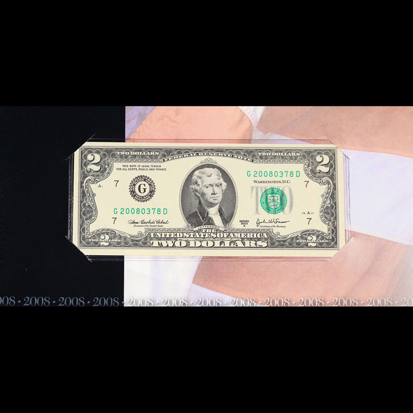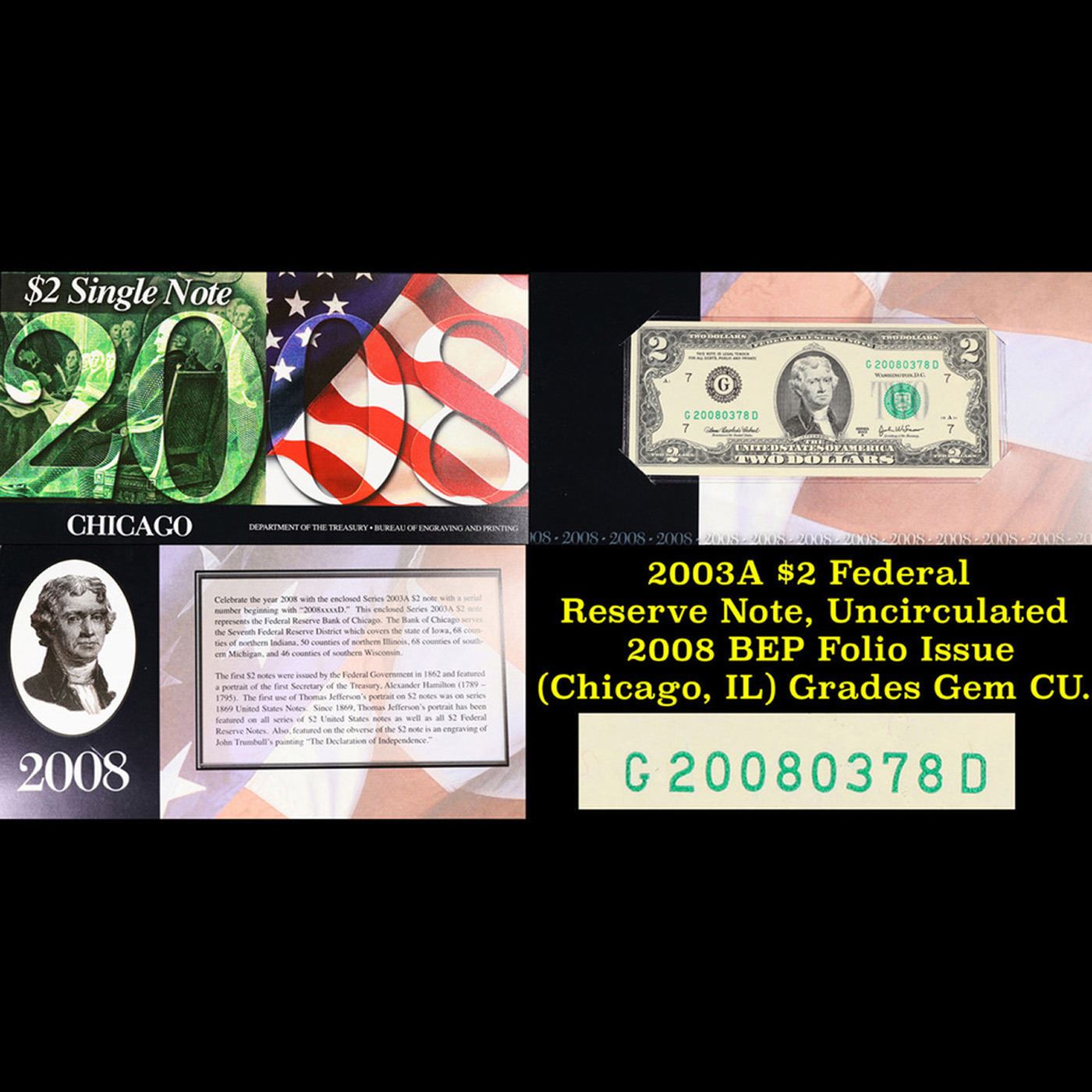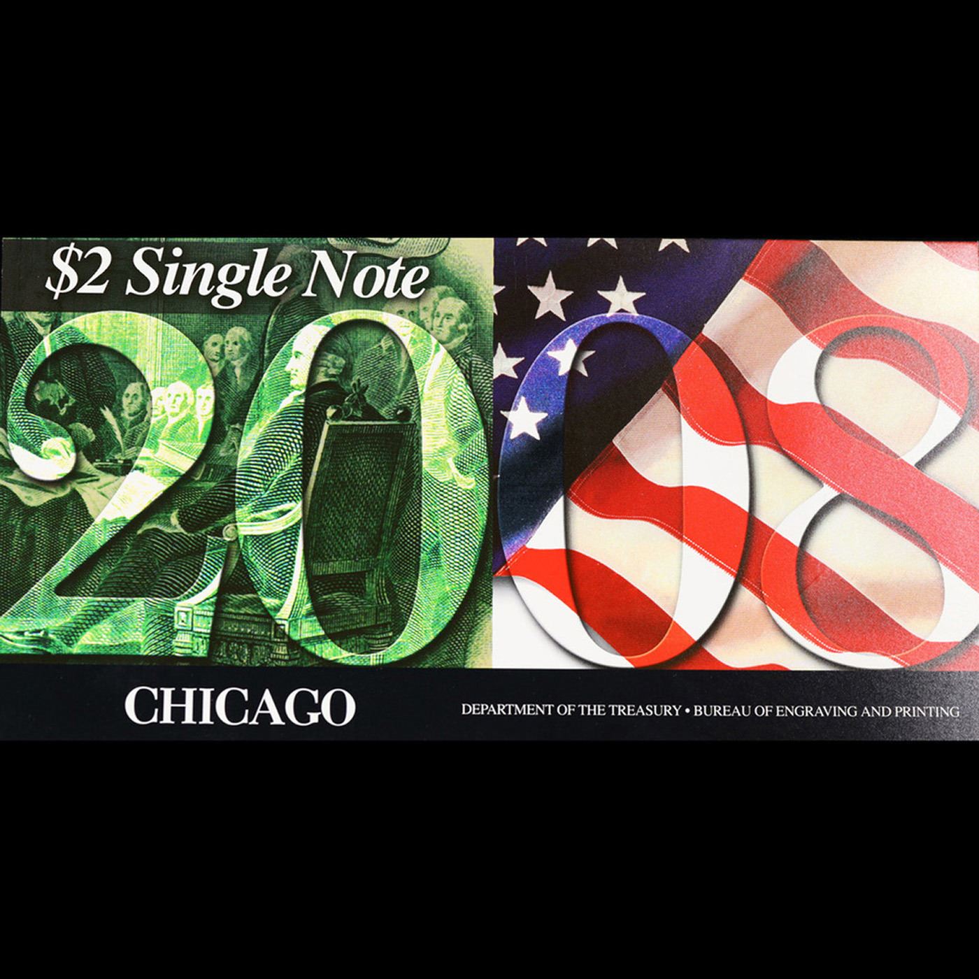 2003A $2 Federal Reserve Note, Uncirculated 2008 BEP Folio Issue (Chicago, IL) Grades Gem CU.