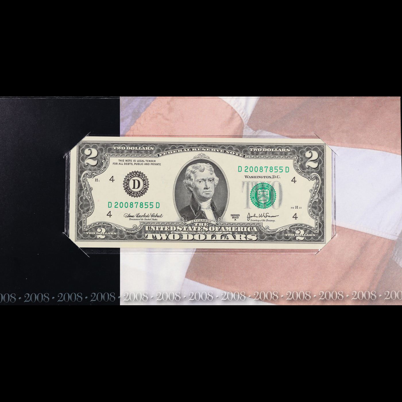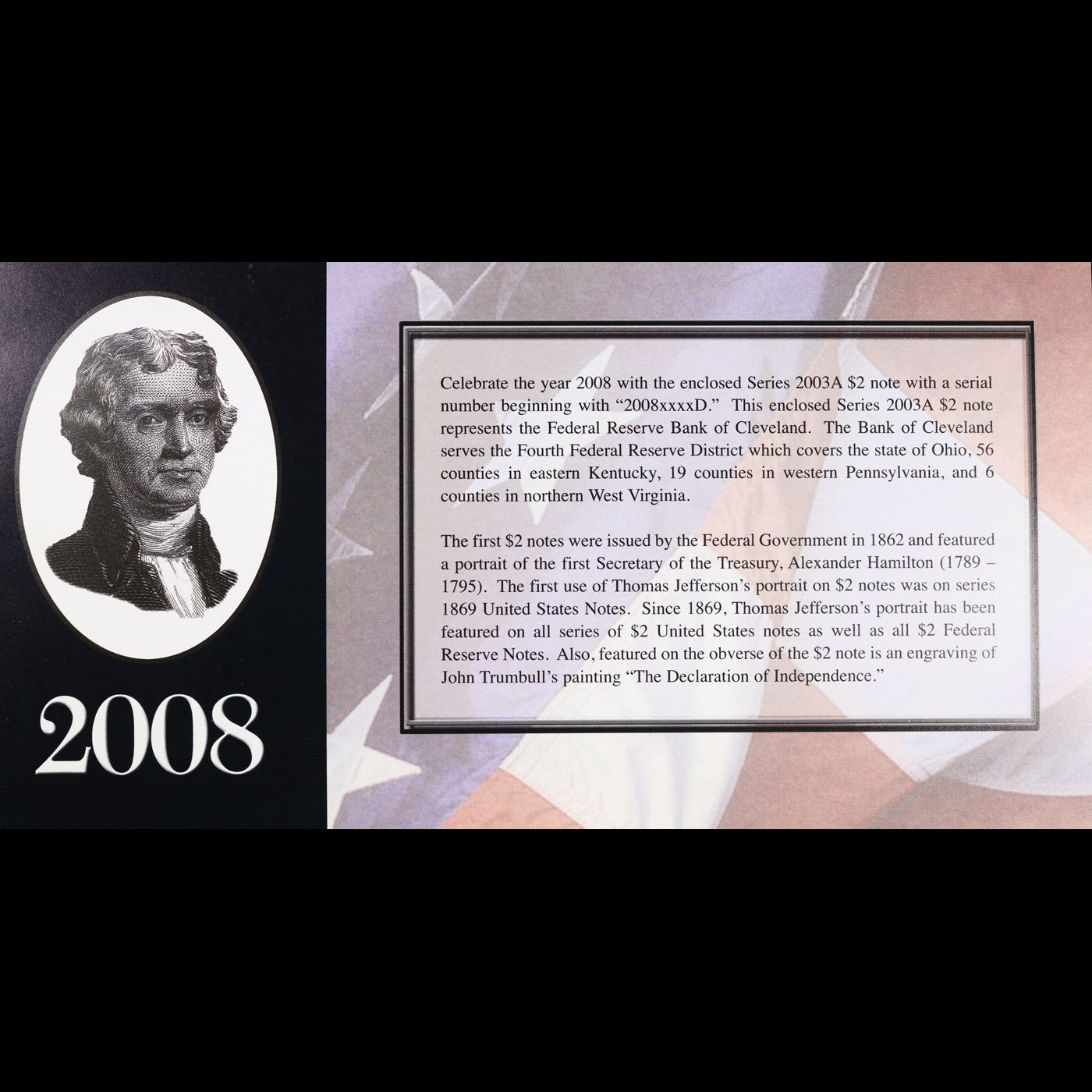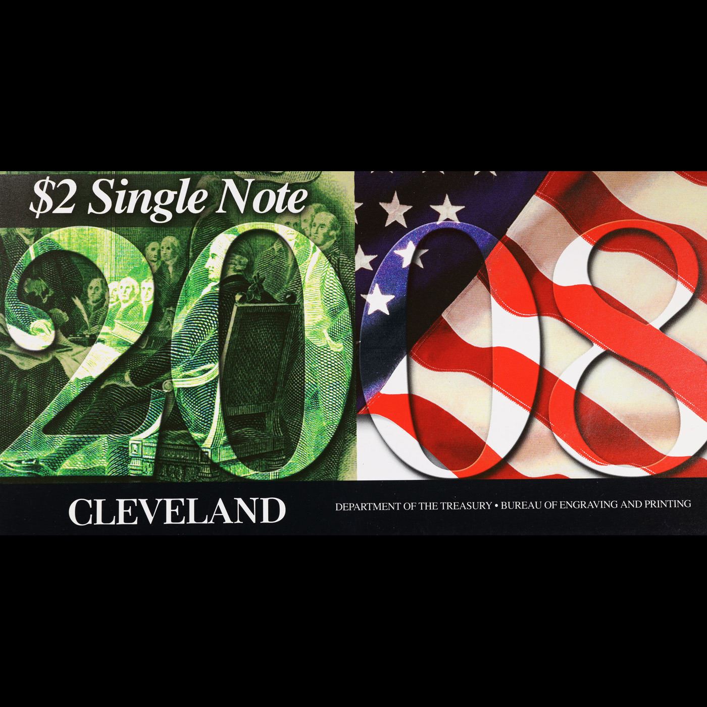 2003A $2 Federal Reserve Note, Uncirculated 2008 BEP Folio Issue (Cleveland, OH) Grades Gem CU