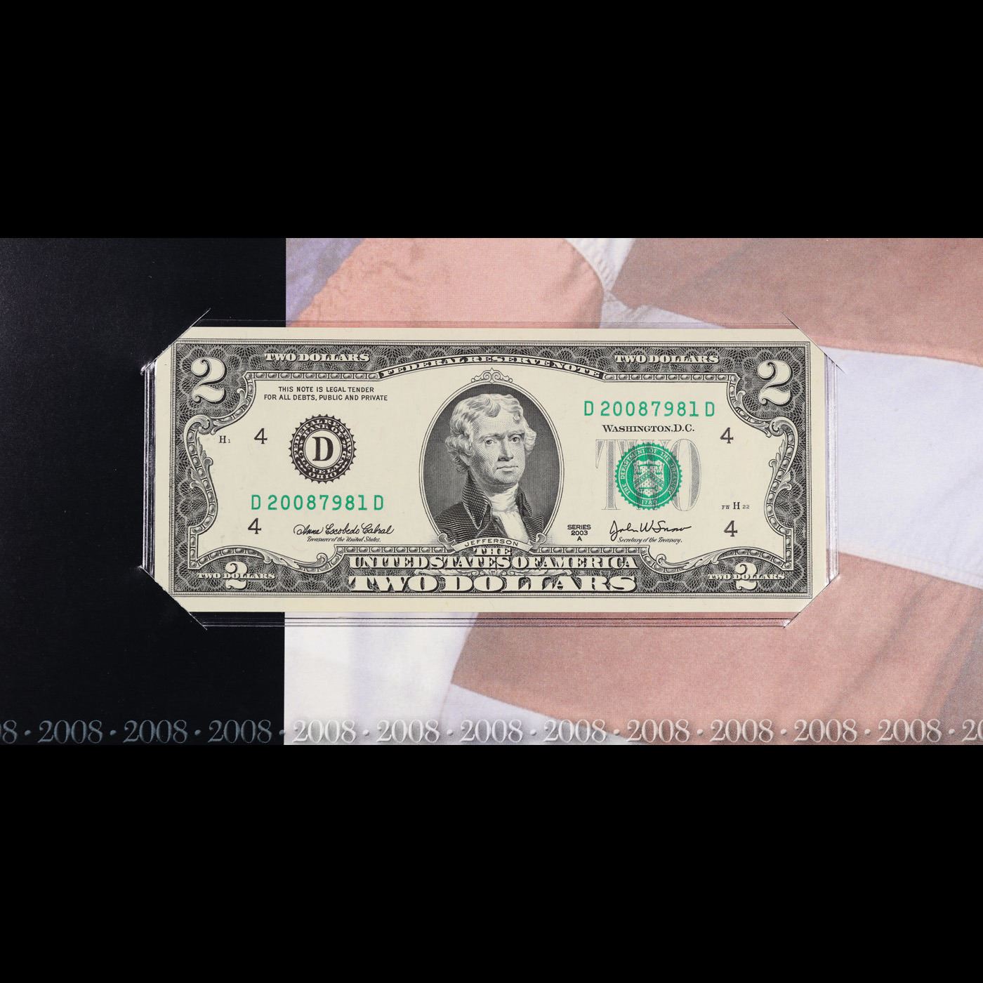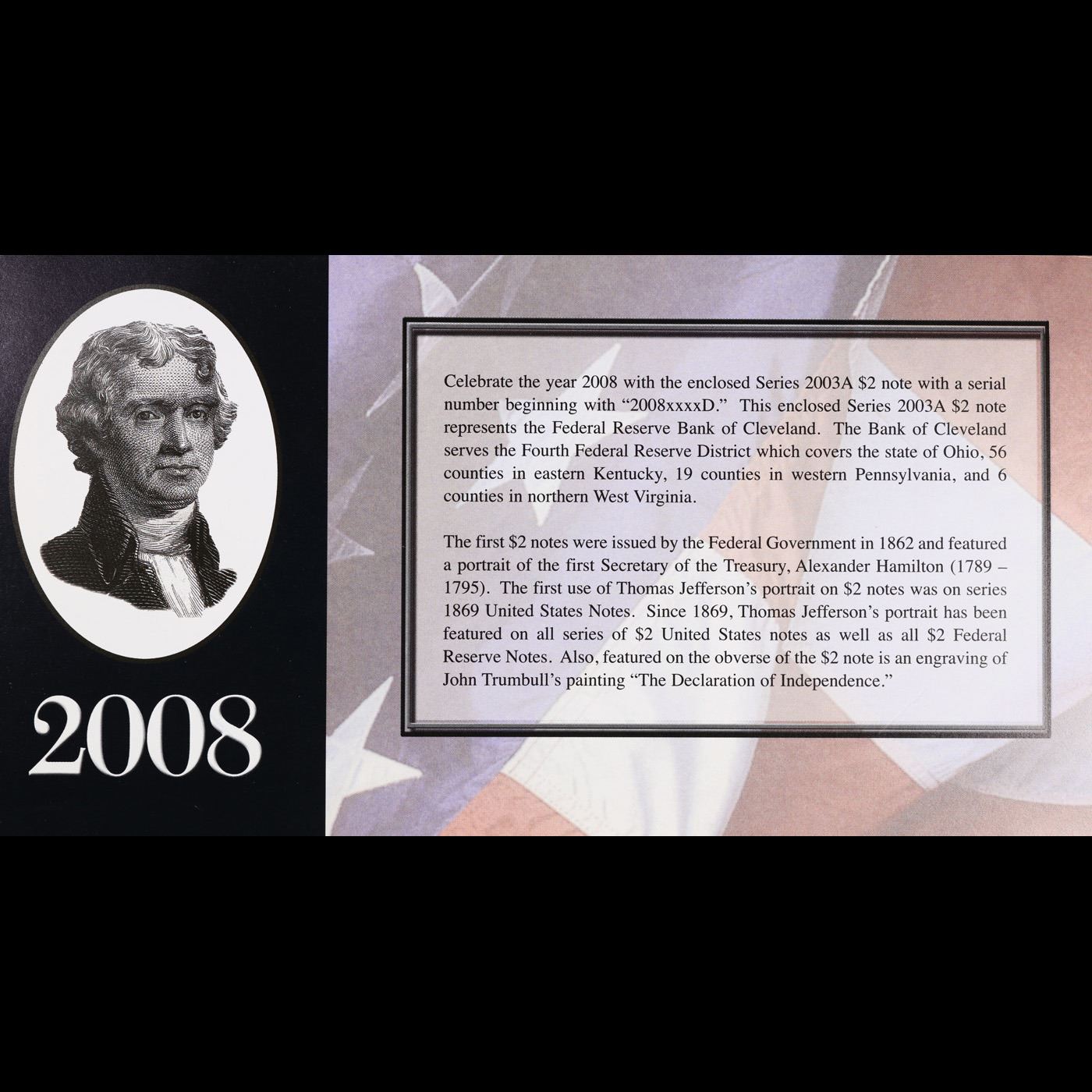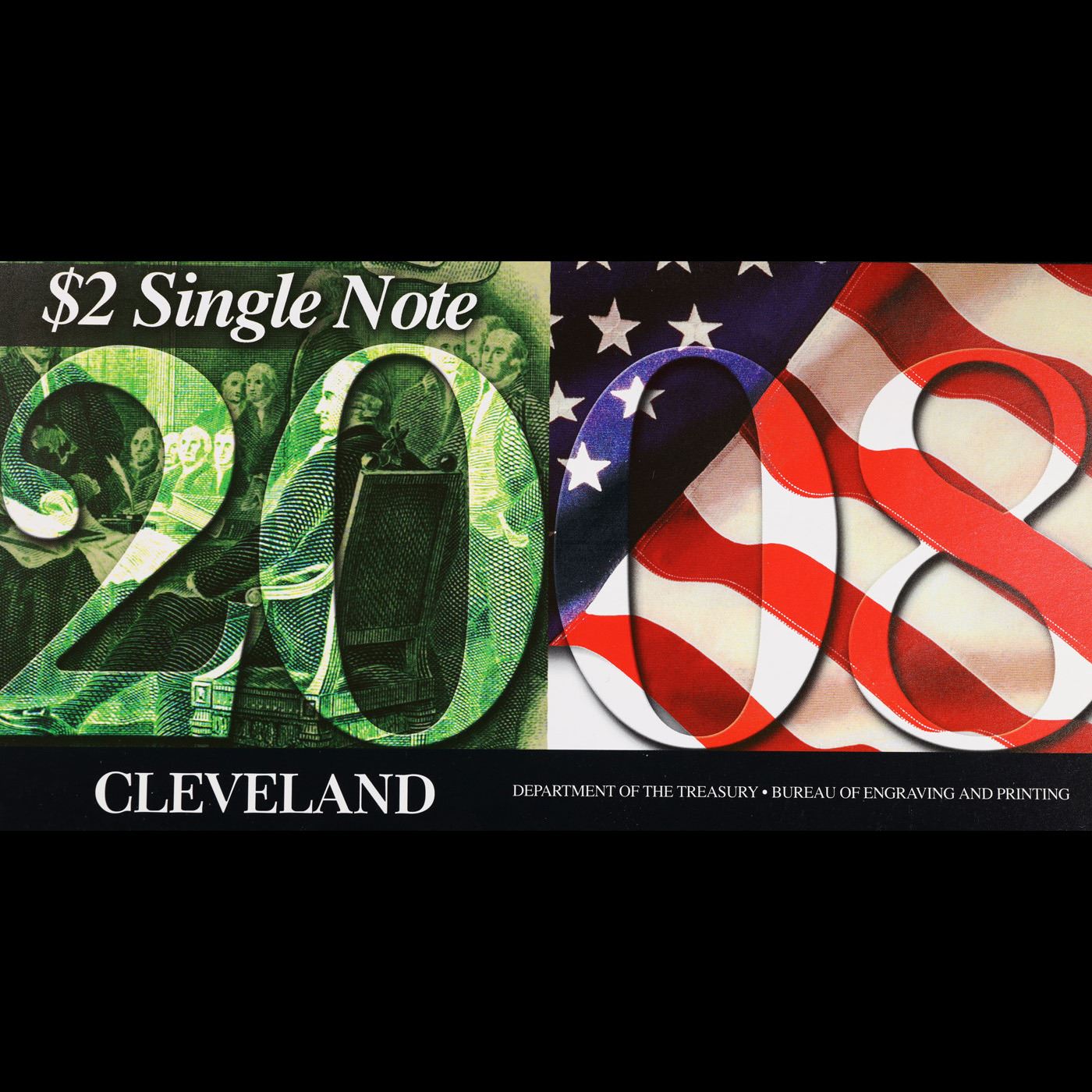 2003A $2 Federal Reserve Note, Uncirculated 2008 BEP Folio Issue (Cleveland, OH) Grades Gem CU