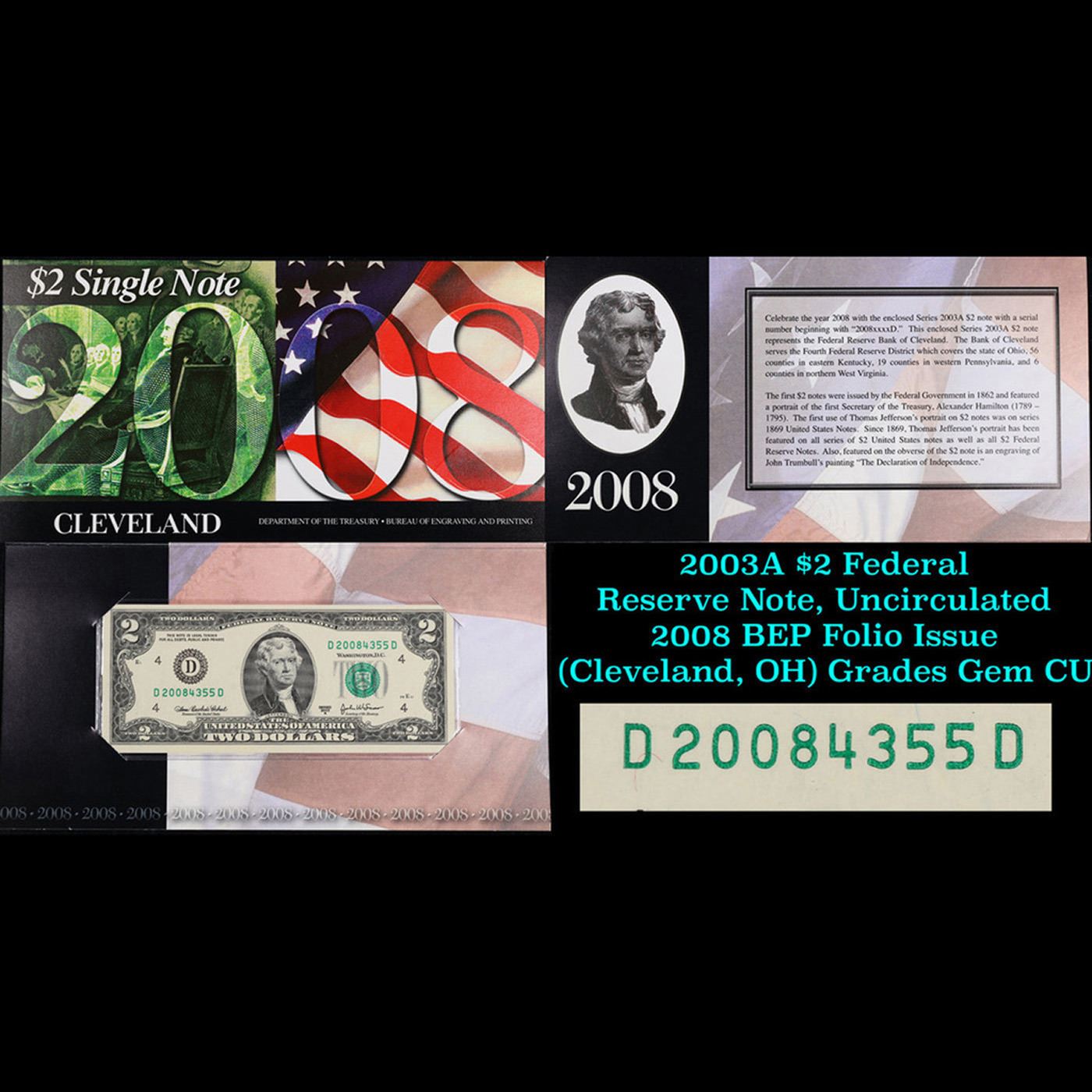 2003A $2 Federal Reserve Note, Uncirculated 2008 BEP Folio Issue (Cleveland, OH) Grades Gem CU.