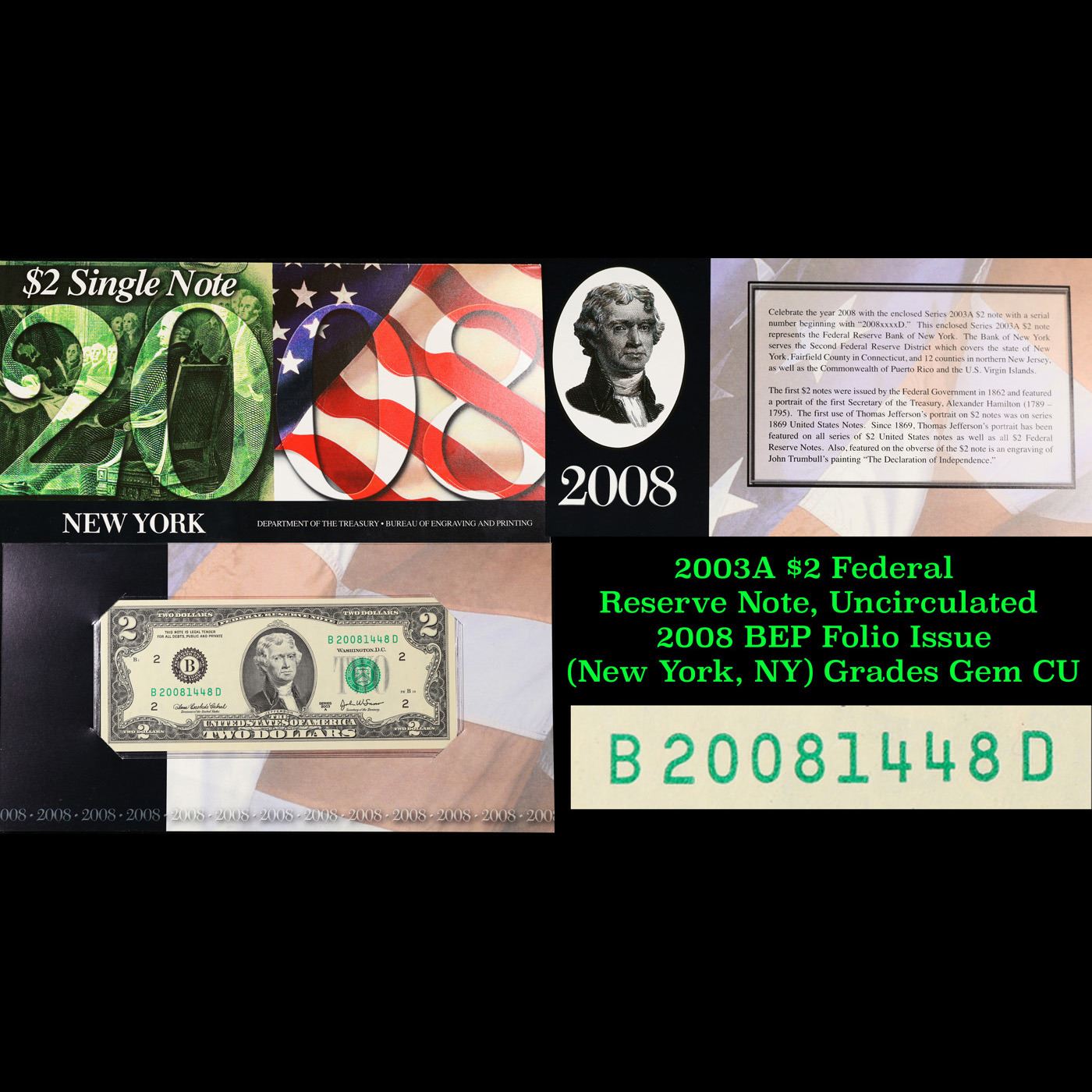 2003A $2 Federal Reserve Note, Uncirculated 2008 BEP Folio Issue (New York, NY) Grades Gem CU.