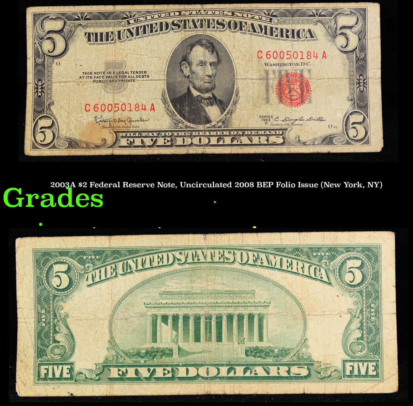 2003A $2 Federal Reserve Note, Uncirculated 2008 BEP Folio Issue (New York, NY) Grades Gem CU