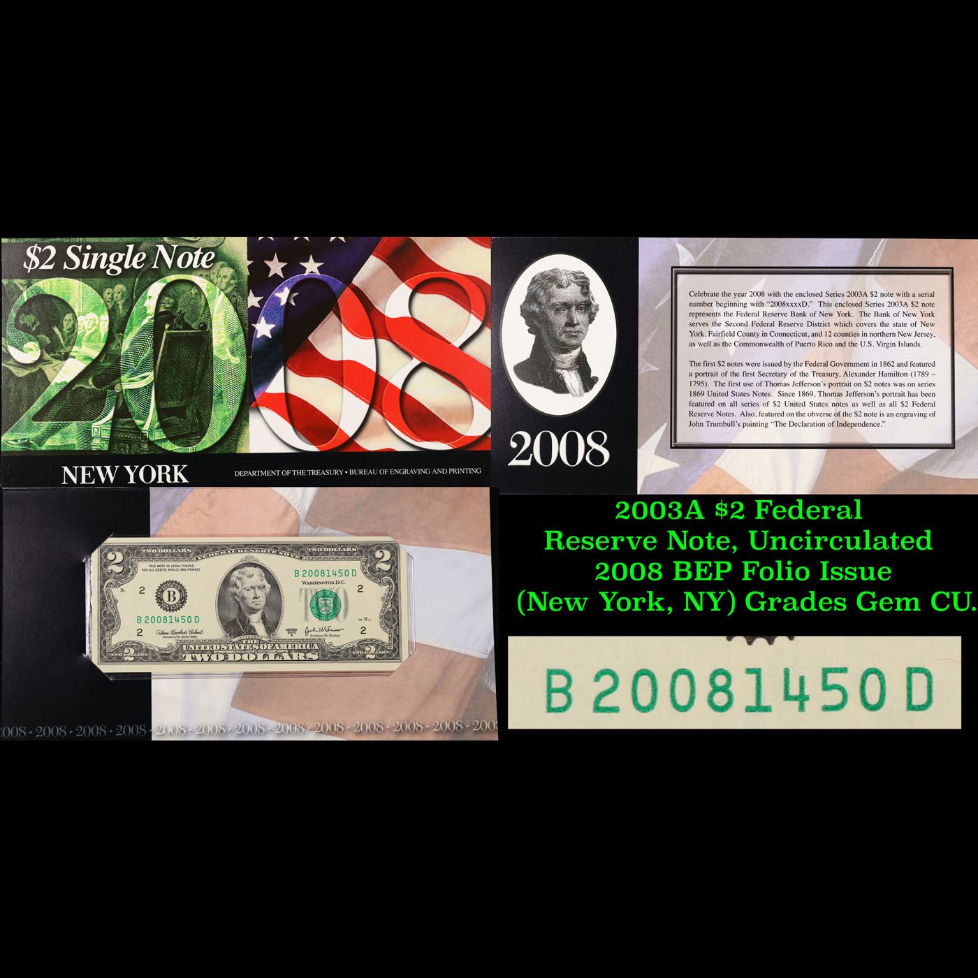 2003A $2 Federal Reserve Note, Uncirculated 2008 BEP Folio Issue (New York, NY) Grades Gem CU.