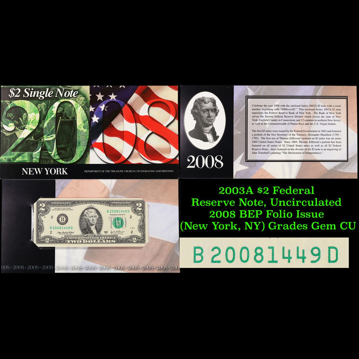 2003A $2 Federal Reserve Note, Uncirculated 2008 BEP Folio Issue (New York, NY) Grades Gem CU.
