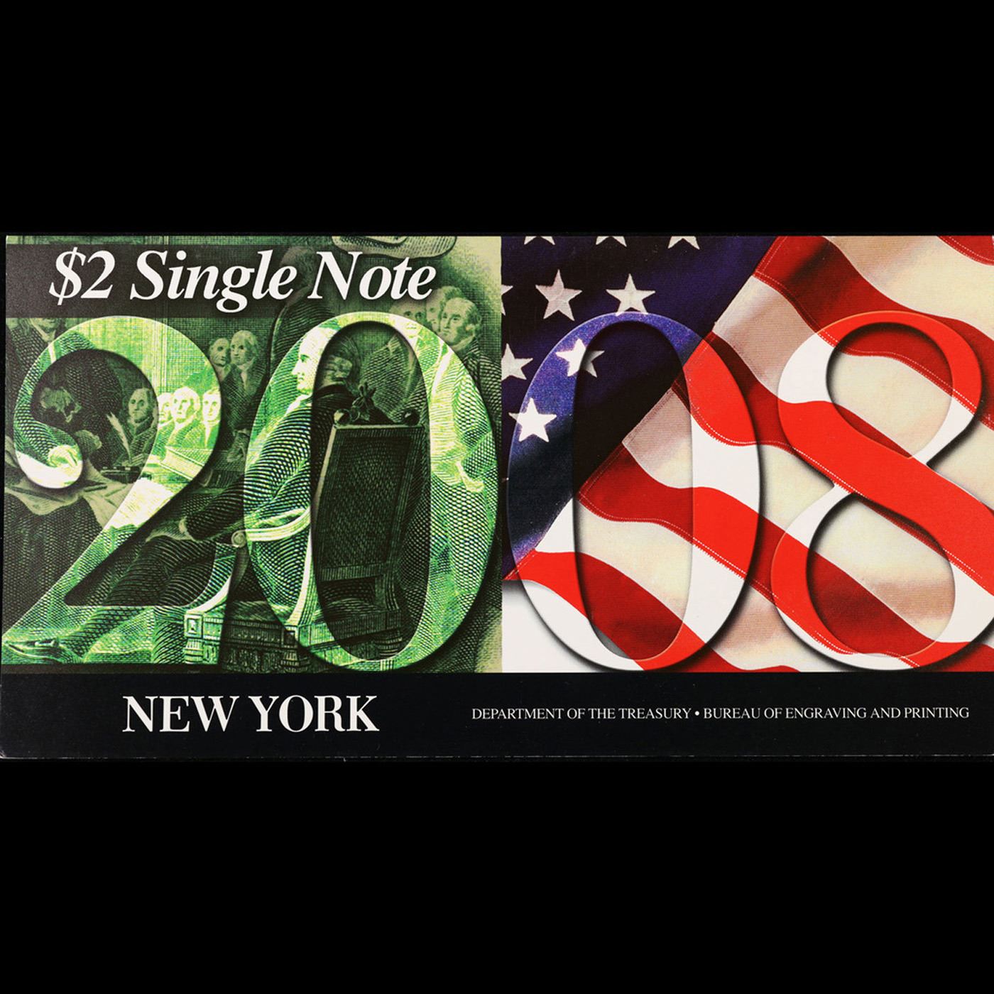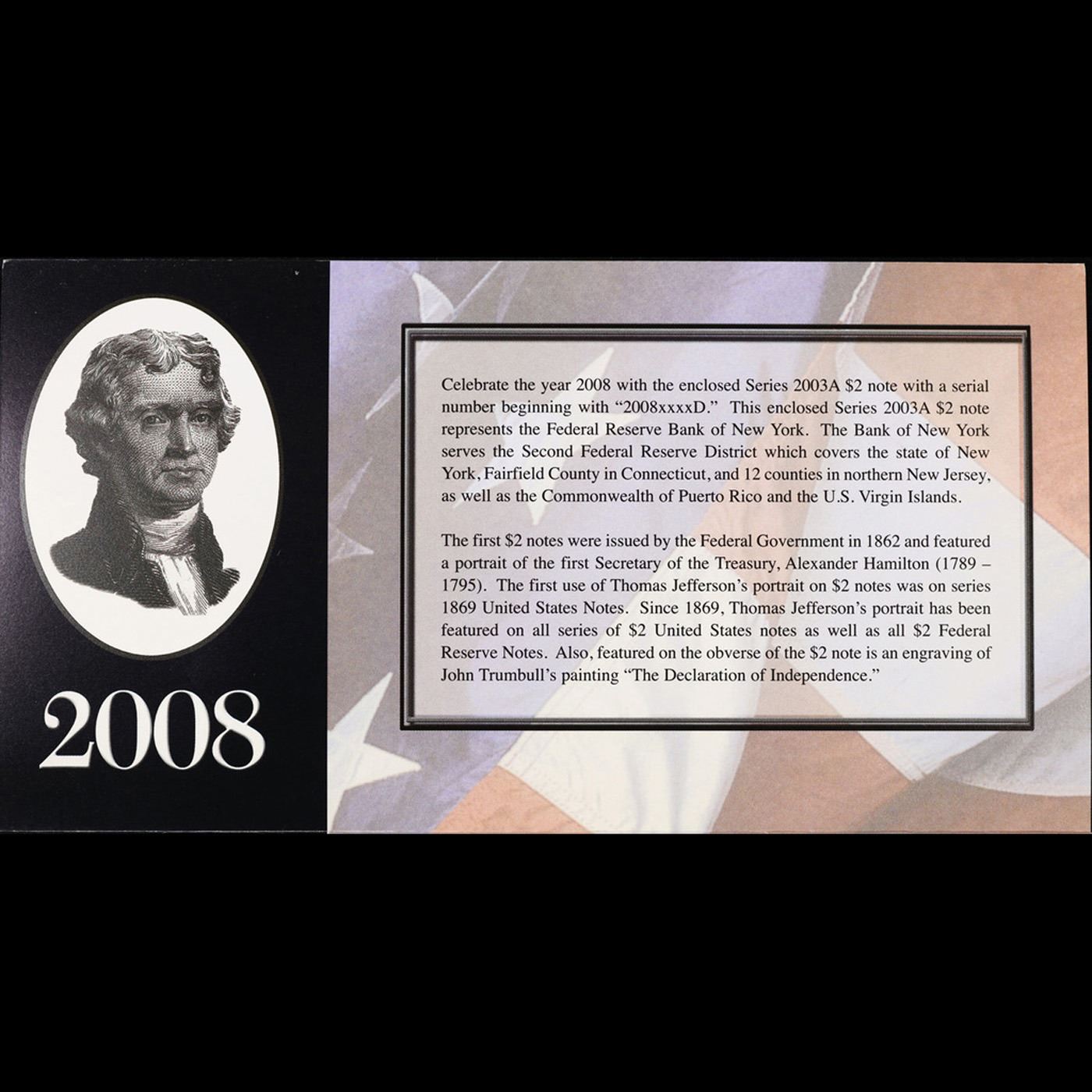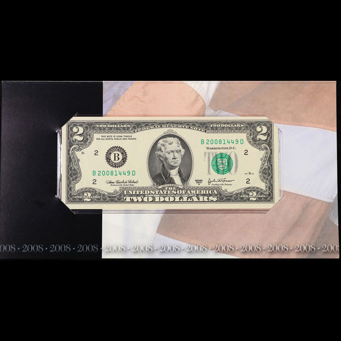 2003A $2 Federal Reserve Note, Uncirculated 2008 BEP Folio Issue (New York, NY) Grades Gem CU