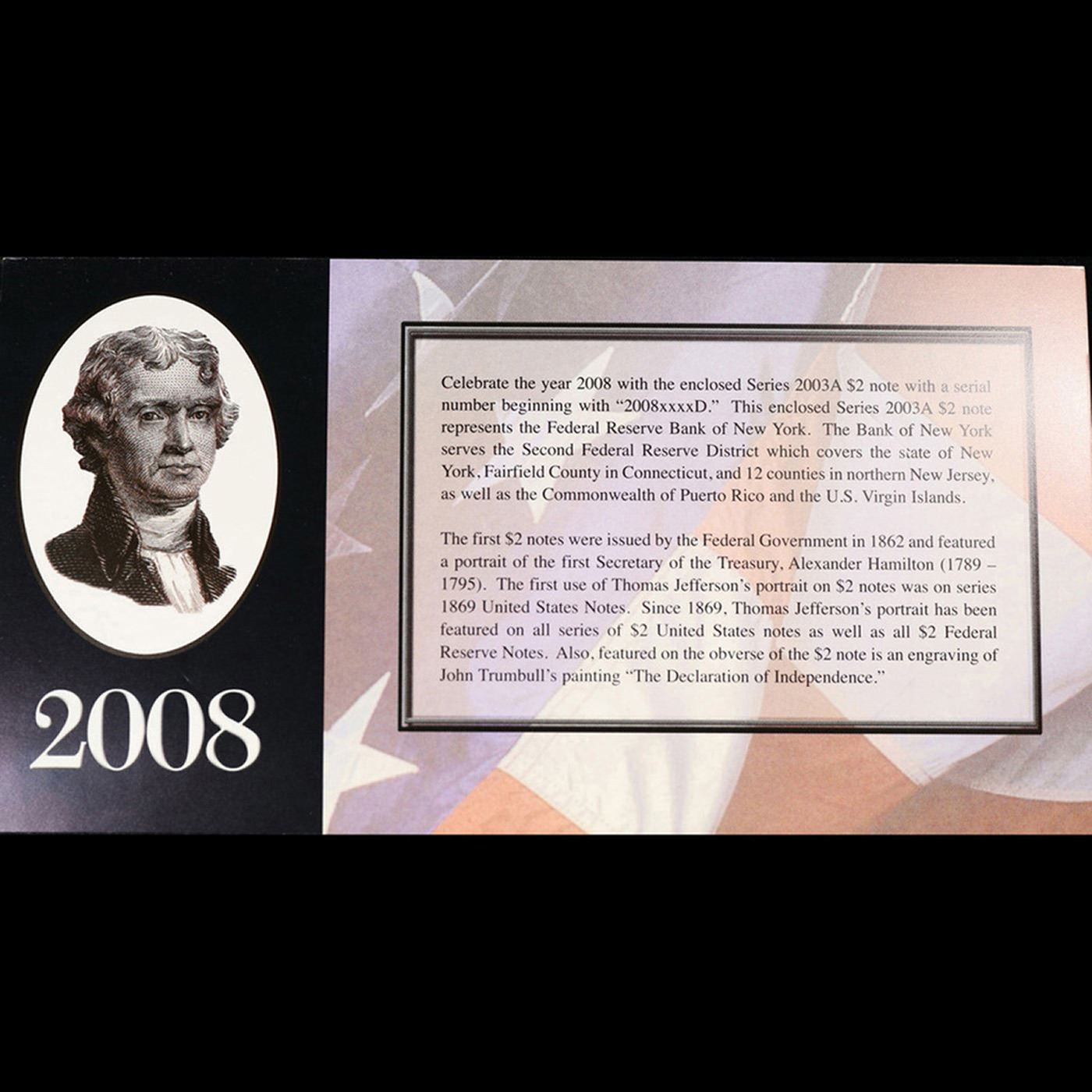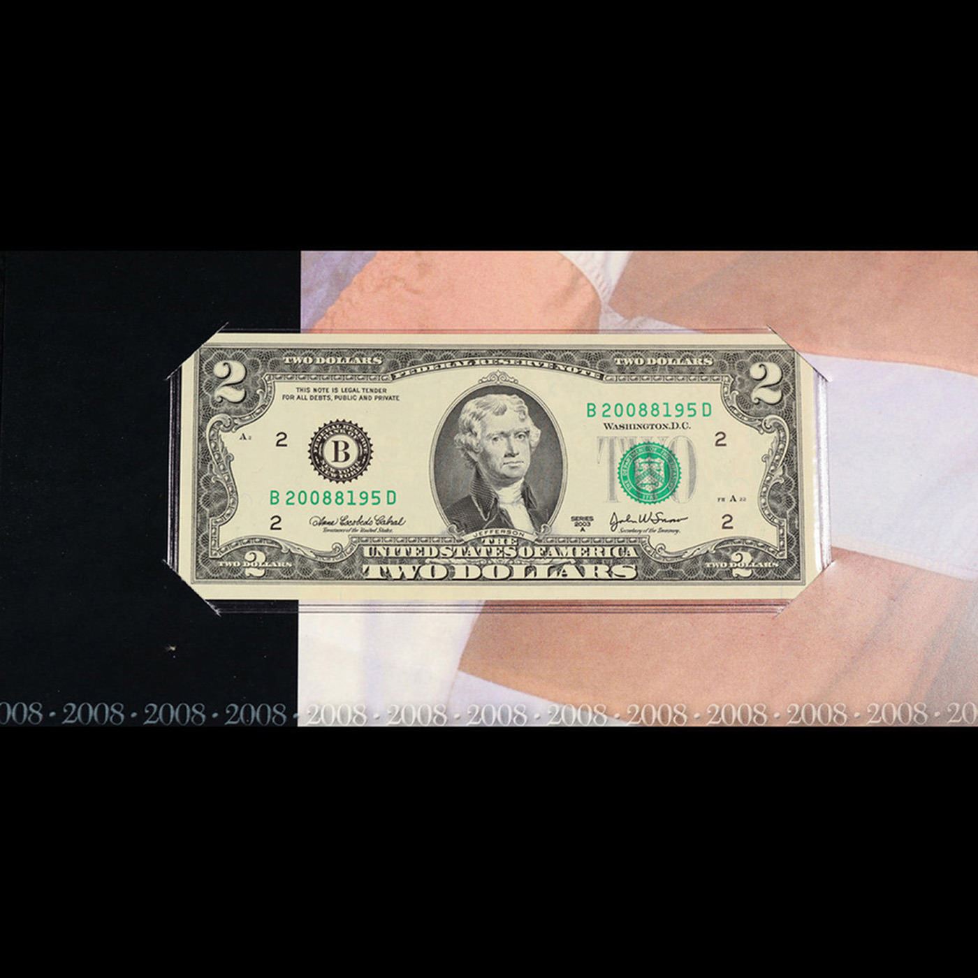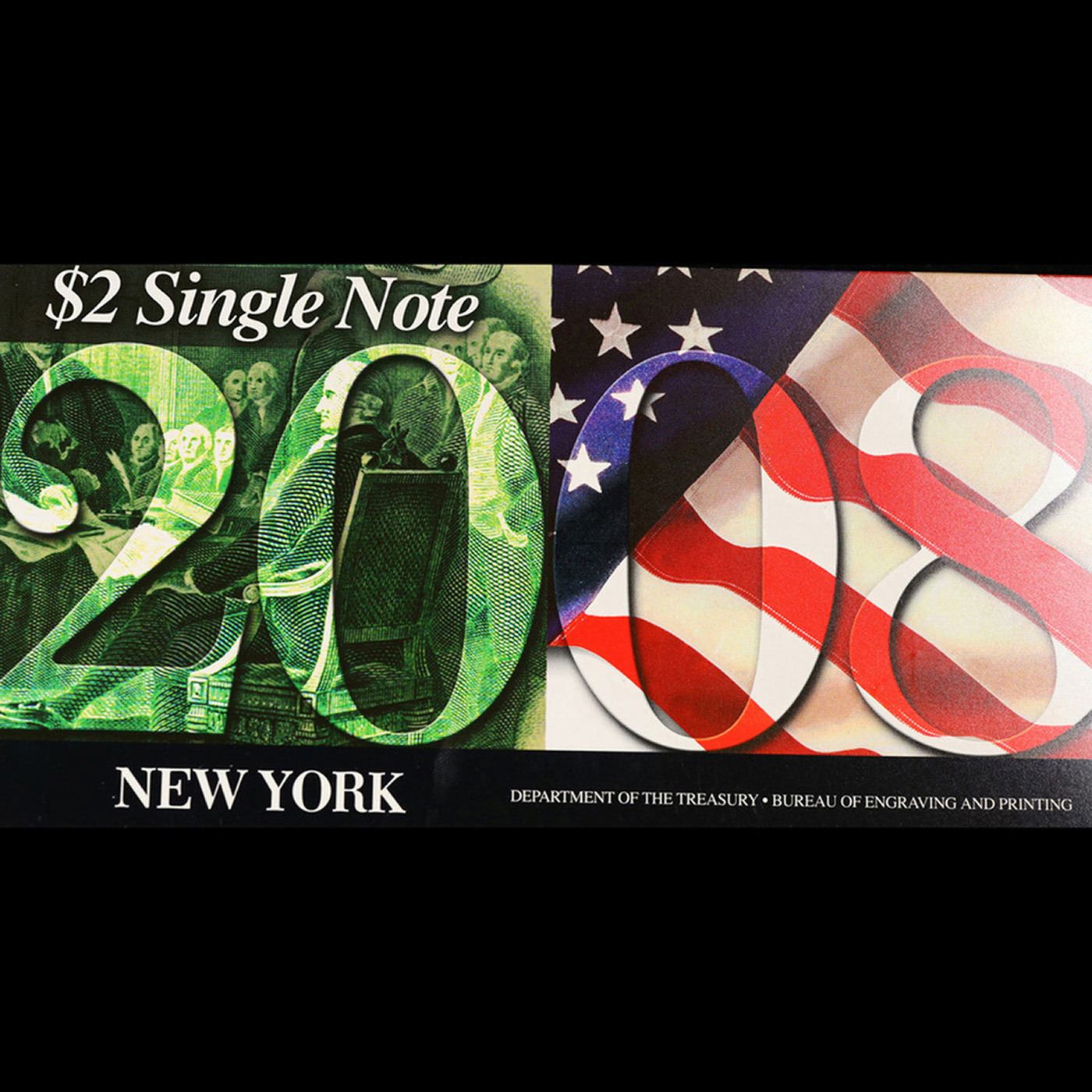 2003A $2 Federal Reserve Note, Uncirculated 2008 BEP Folio Issue (New York, NY) Grades Gem CU.