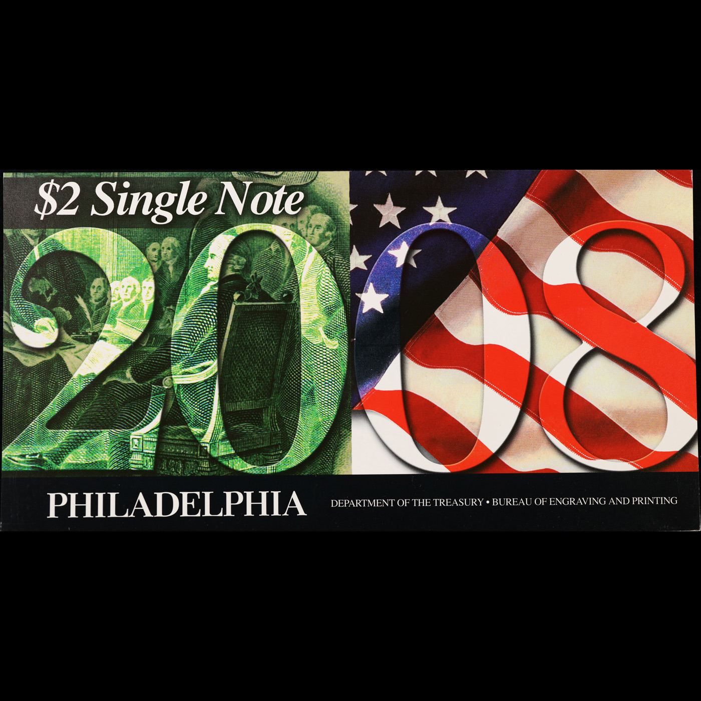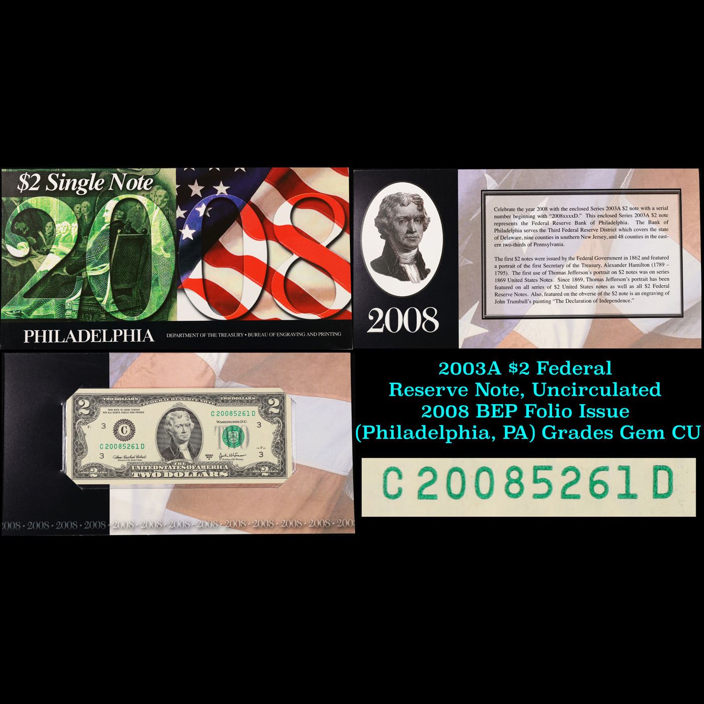 2003A $2 Federal Reserve Note, Uncirculated 2008 BEP Folio Issue (Philadelphia, PA) Grades Gem CU