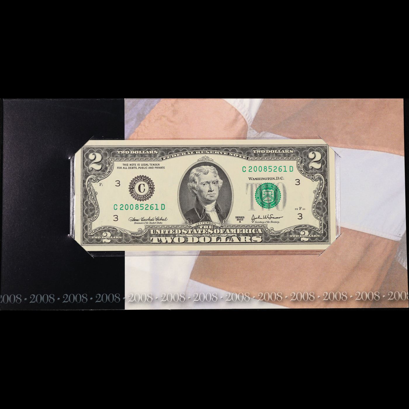 2003A $2 Federal Reserve Note, Uncirculated 2008 BEP Folio Issue (Philadelphia, PA) Grades Gem CU.