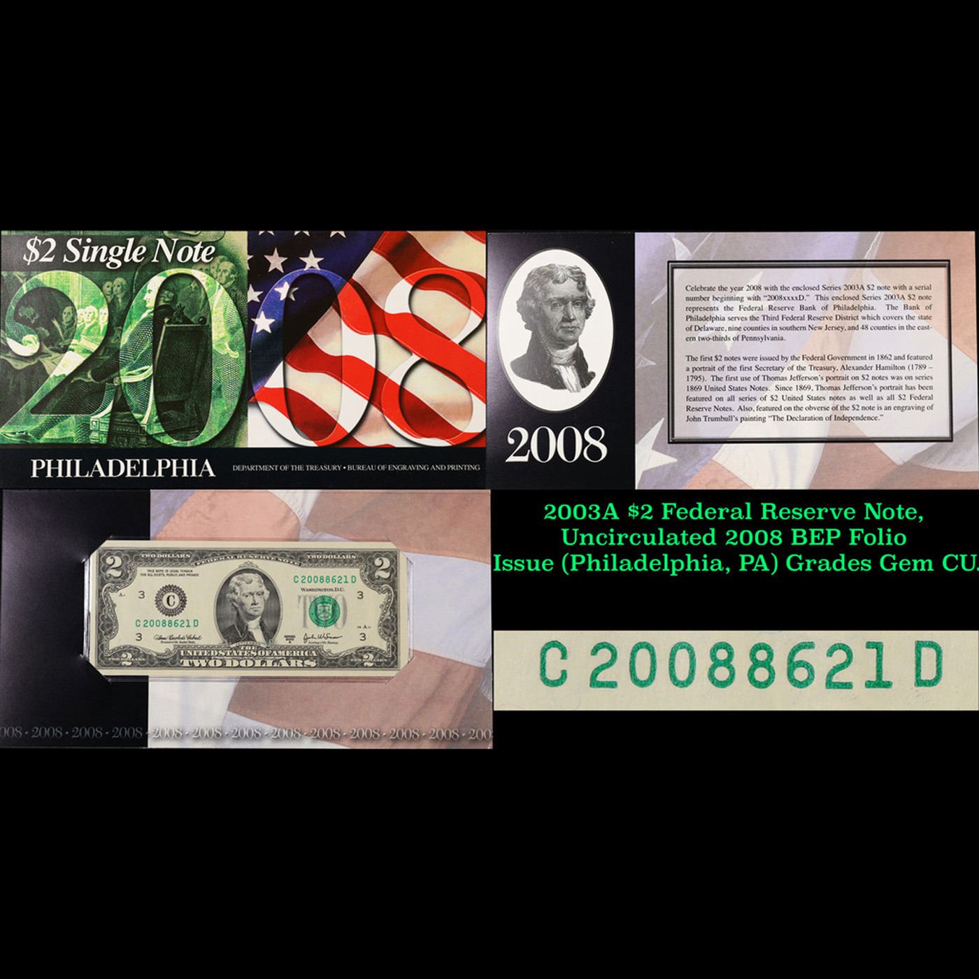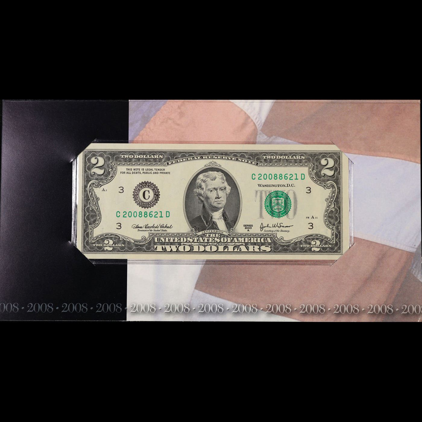 2003A $2 Federal Reserve Note, Uncirculated 2008 BEP Folio Issue (Philadelphia, PA) Grades Gem CU