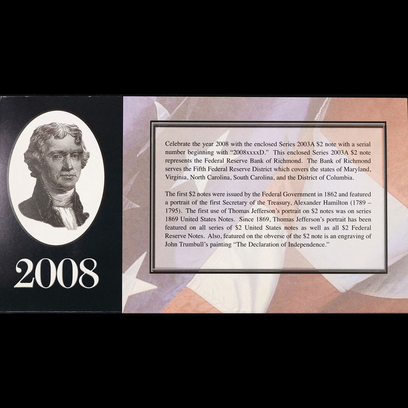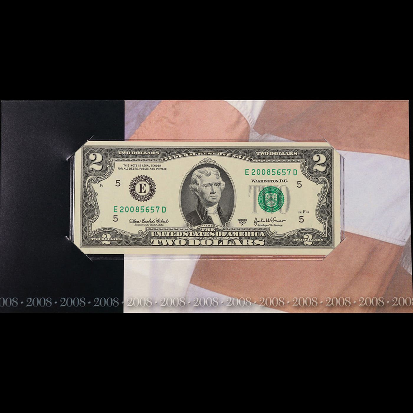 2003A $2 Federal Reserve Note, Uncirculated 2008 BEP Folio Issue (Richmond, VA) Grades Gem CU