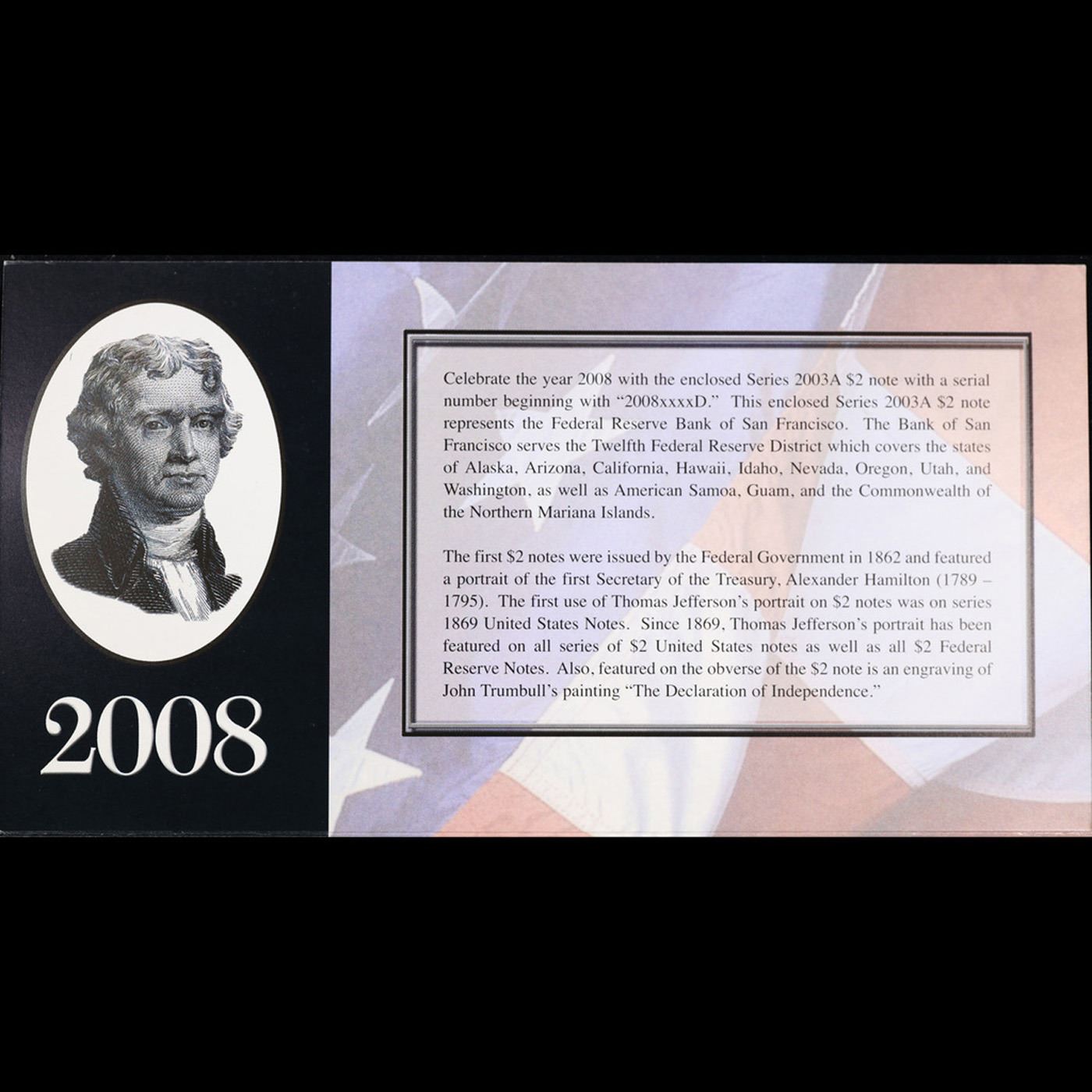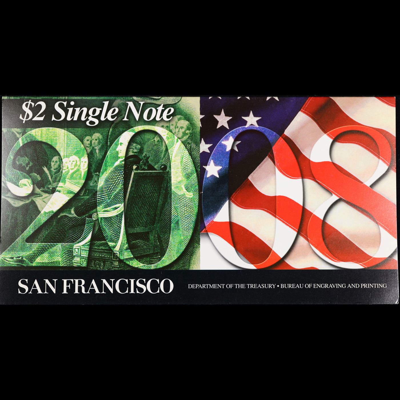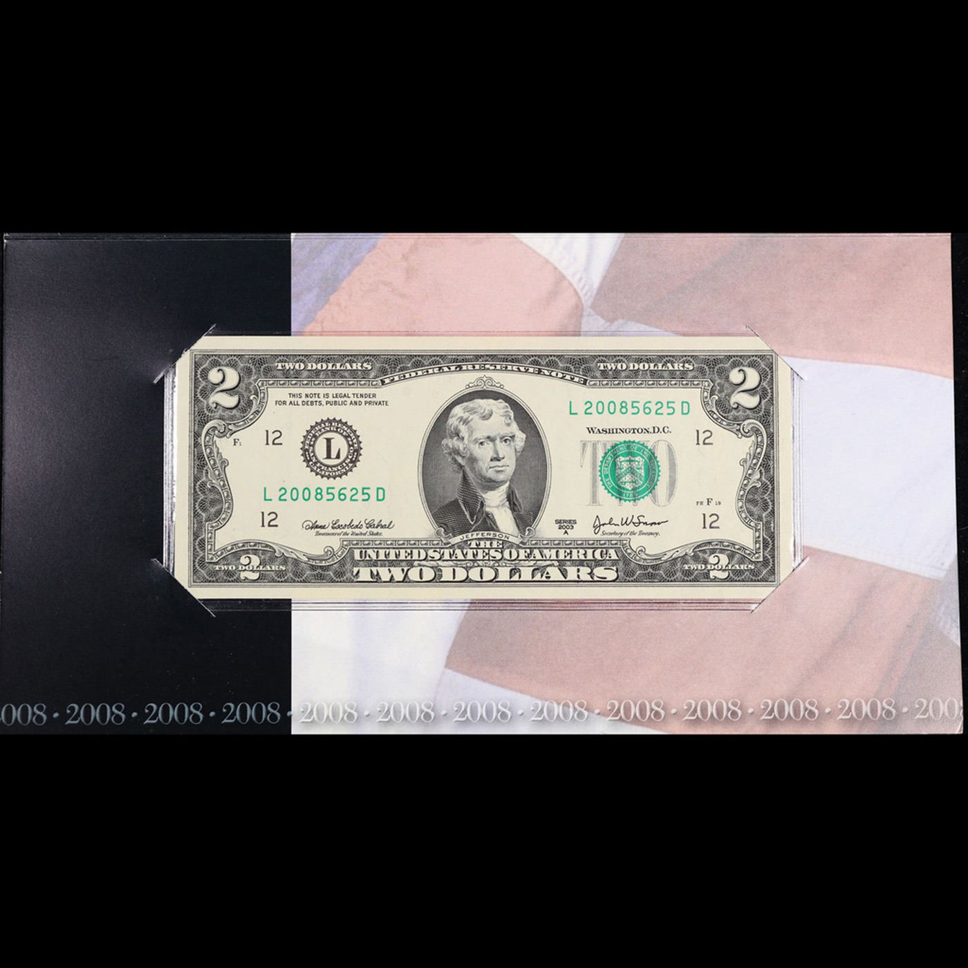 2003A $2 Federal Reserve Note, Uncirculated 2008 BEP Folio Issue (San Francisco, CA) Grades Gem CU
