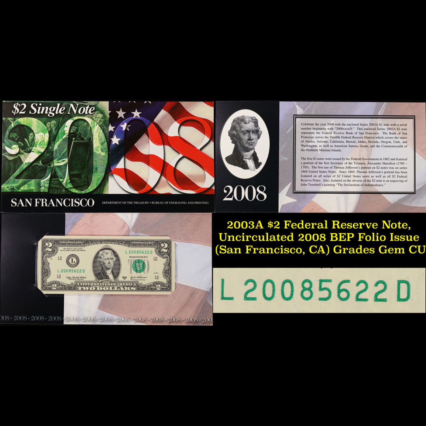 2003A $2 Federal Reserve Note, Uncirculated 2008 BEP Folio Issue (San Francisco, CA) Grades Gem CU.