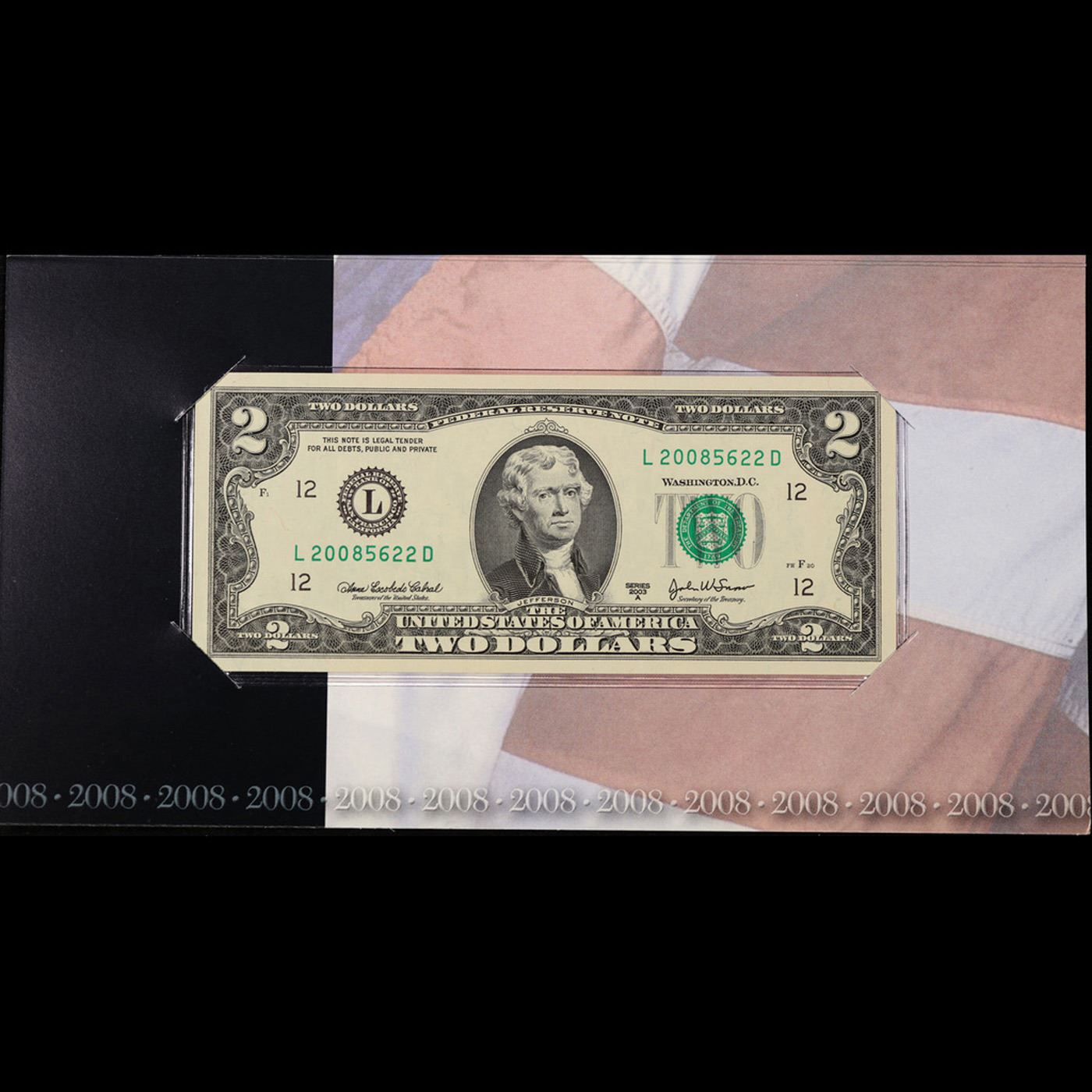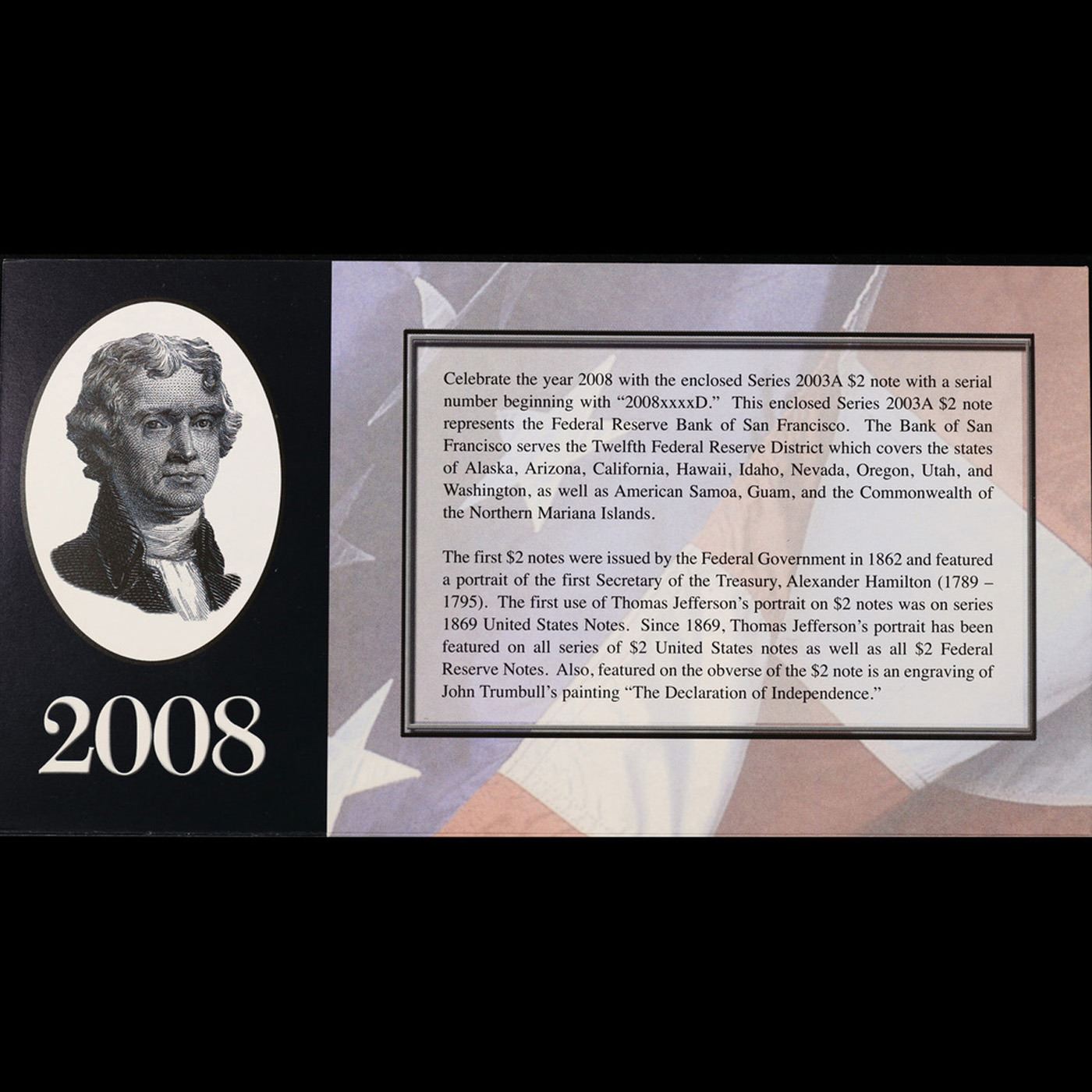 2003A $2 Federal Reserve Note, Uncirculated 2008 BEP Folio Issue (San Francisco, CA) Grades Gem CU