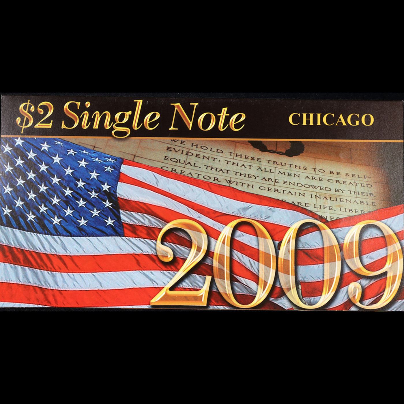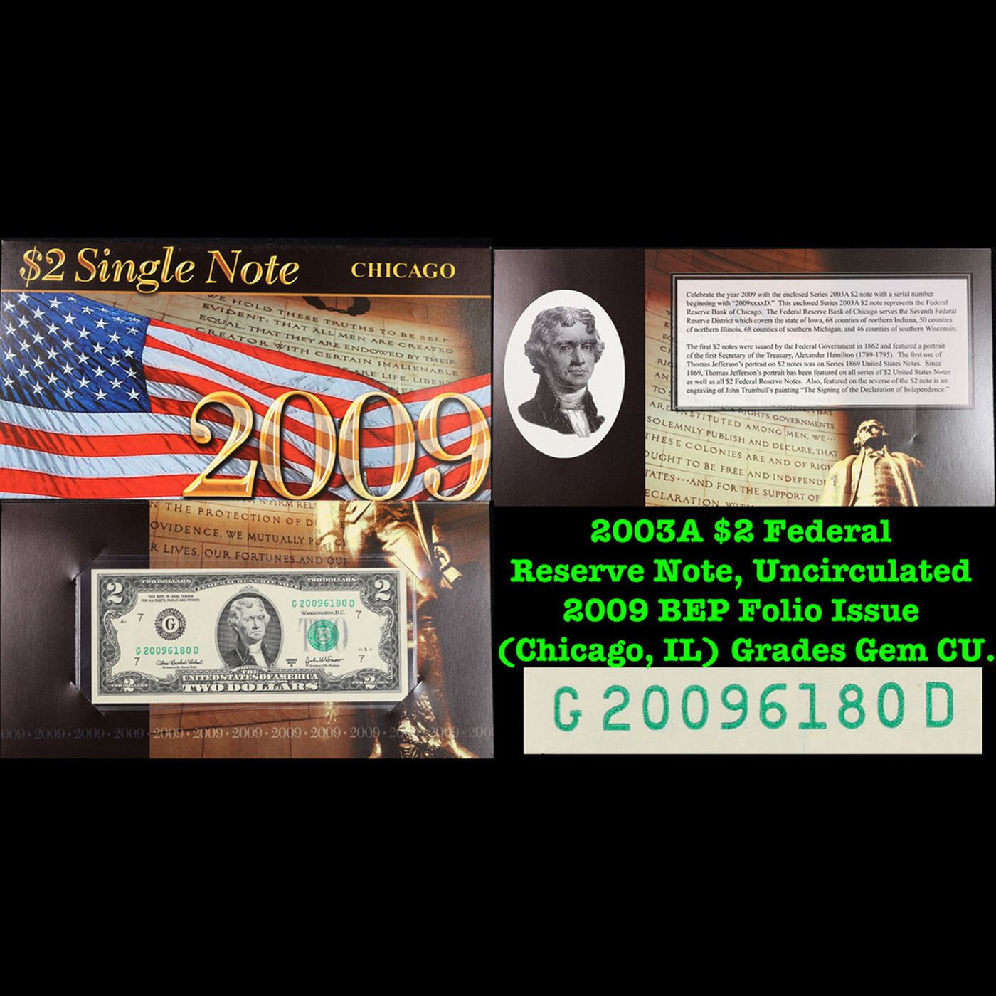 2003A $2 Federal Reserve Note, Uncirculated 2009 BEP Folio Issue (Chicago, IL) Grades Gem CU.