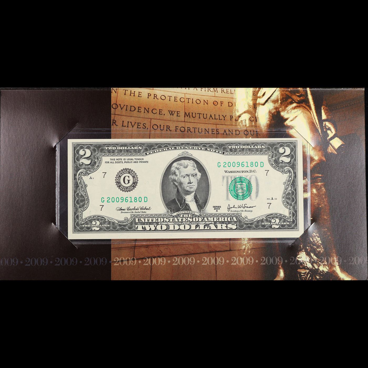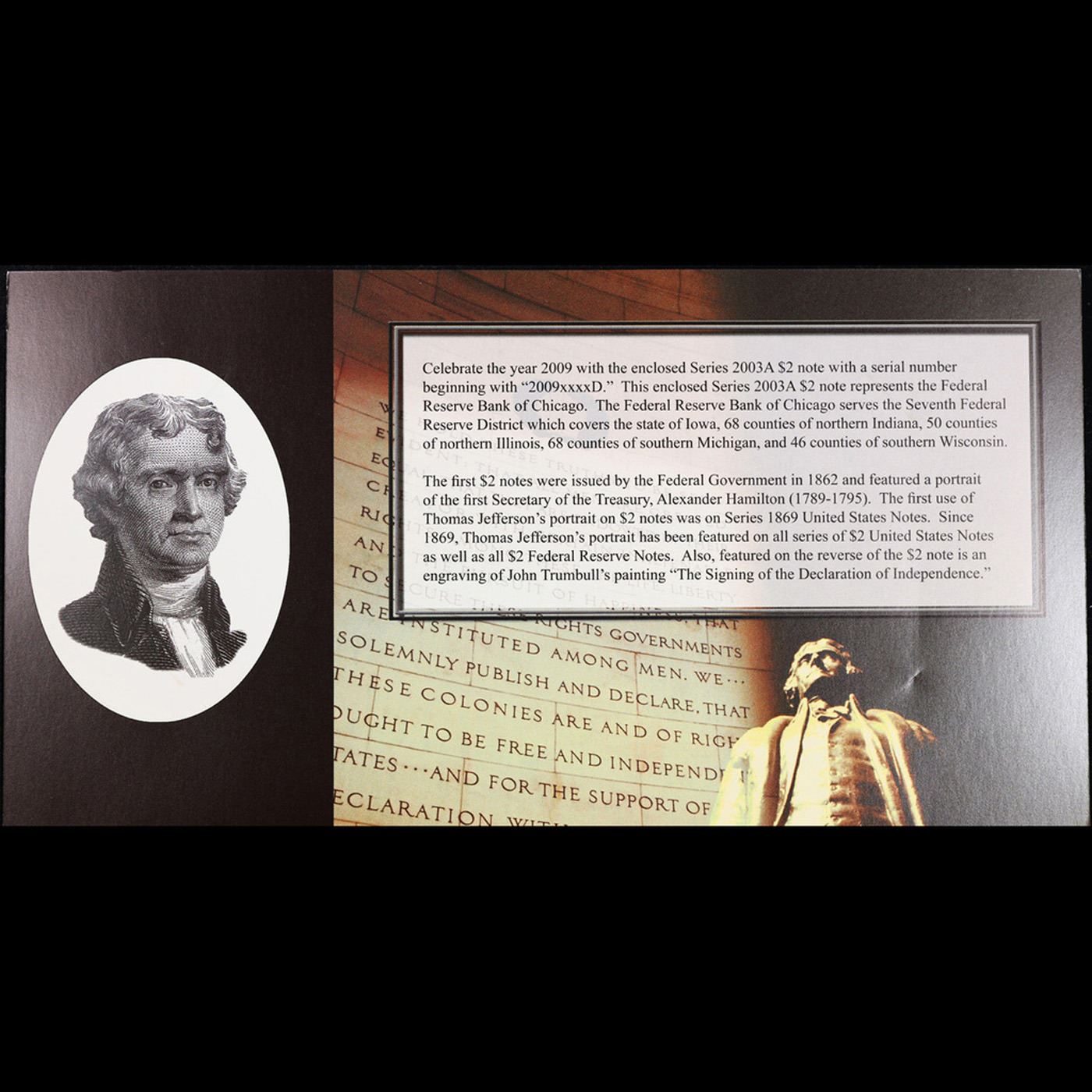 2003A $2 Federal Reserve Note, Uncirculated 2009 BEP Folio Issue (Chicago, IL) Grades Gem CU