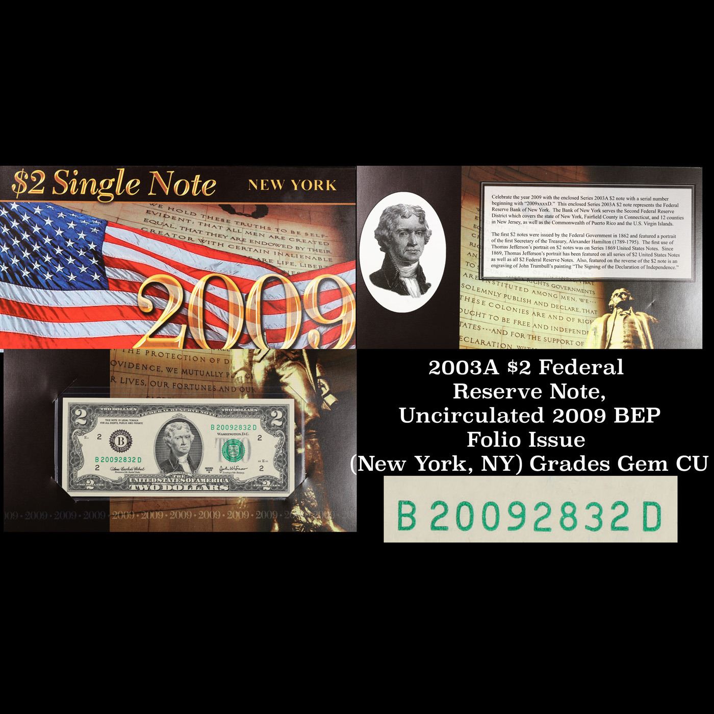 2003A $2 Federal Reserve Note, Uncirculated 2009 BEP Folio Issue (New York, NY) Grades Gem CU.