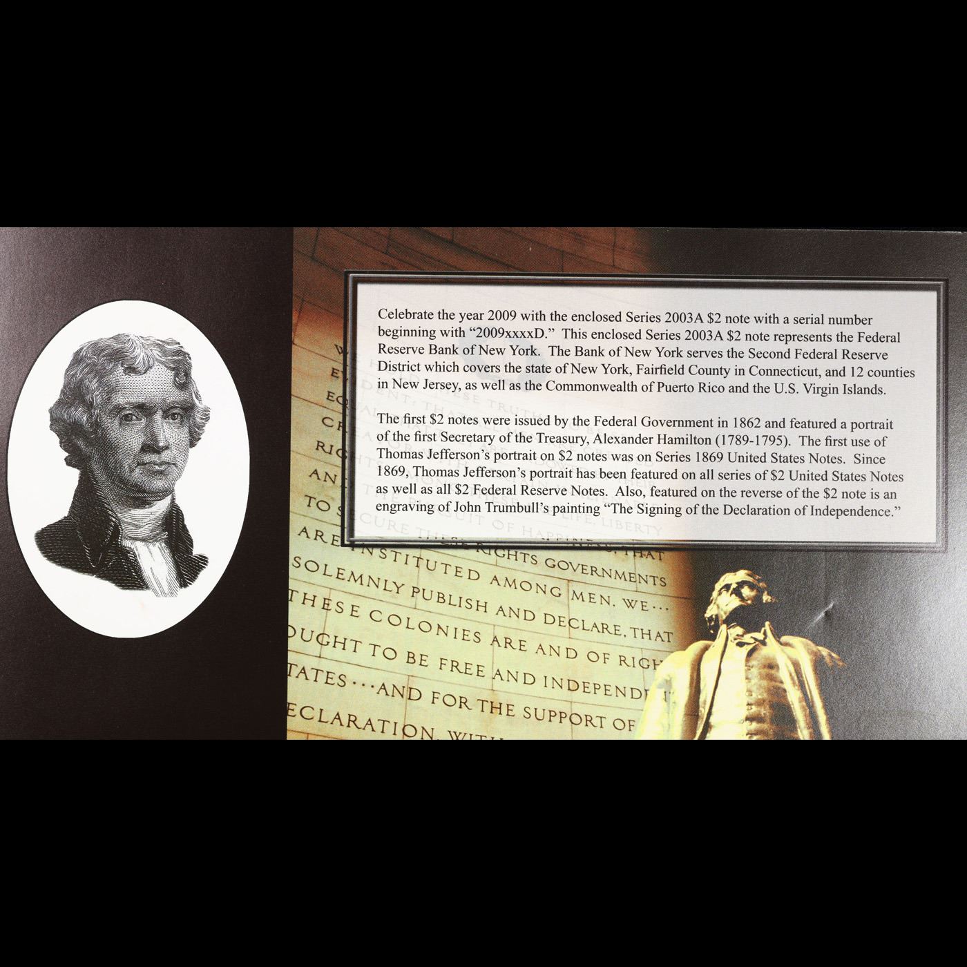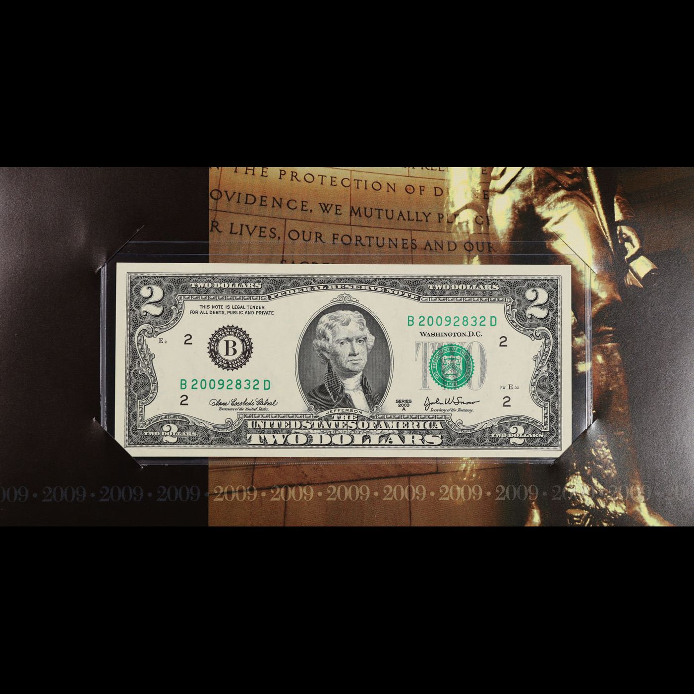 2003A $2 Federal Reserve Note, Uncirculated 2009 BEP Folio Issue (New York, NY) Grades Gem CU