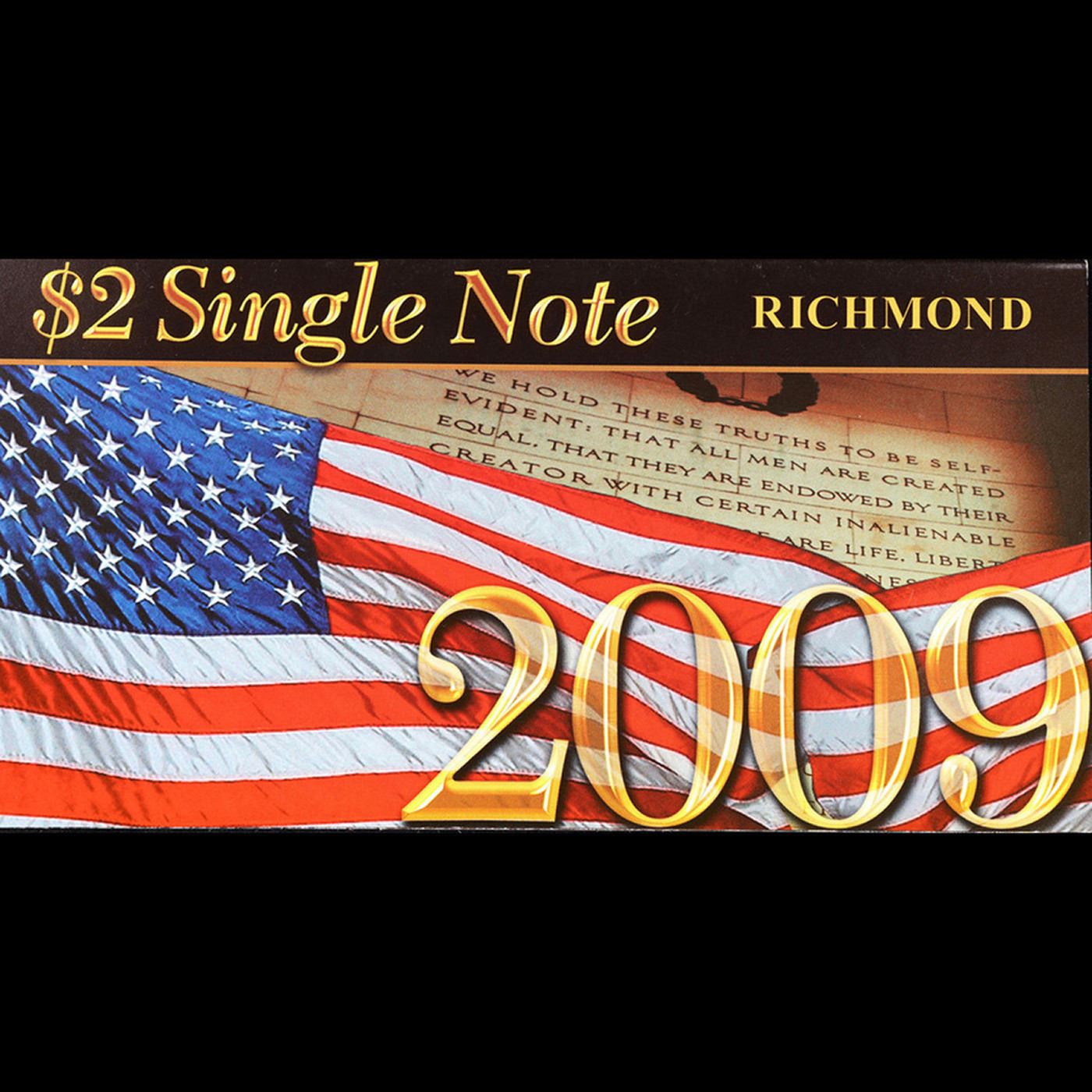 2003A $2 Federal Reserve Note, Uncirculated 2009 BEP Folio Issue (Richmond, VA) Grades Gem CU