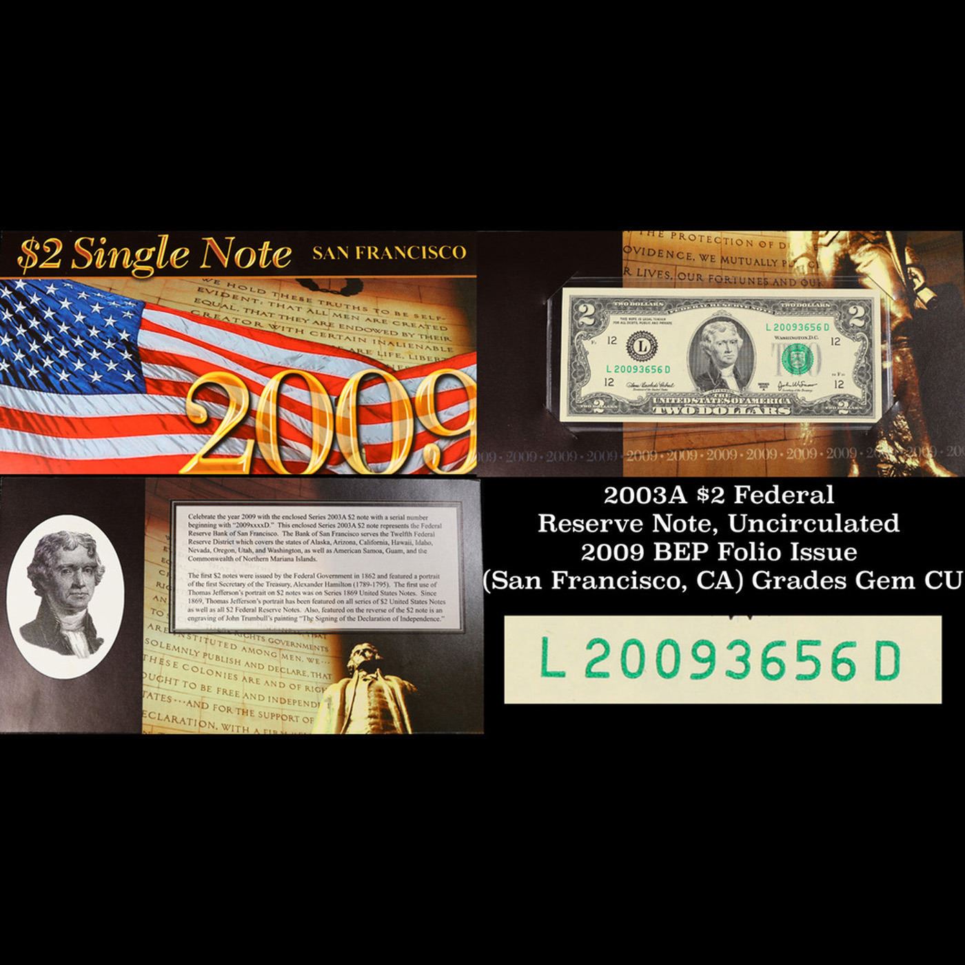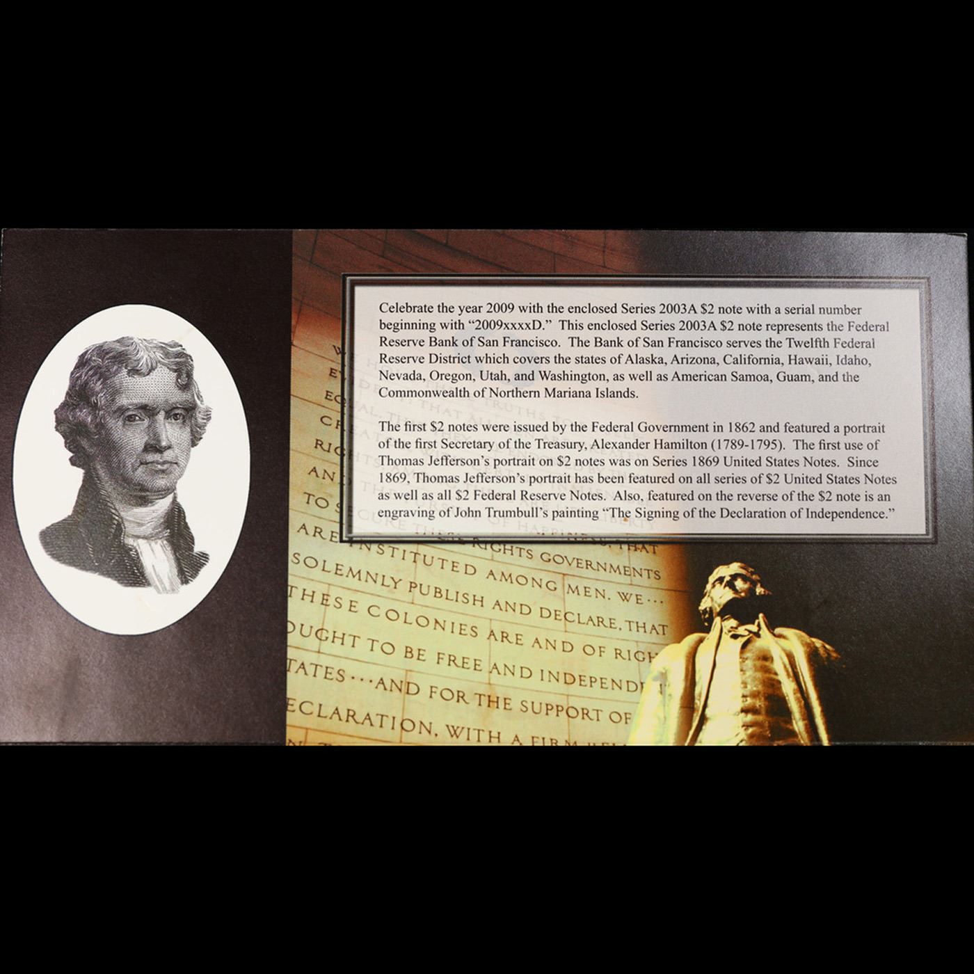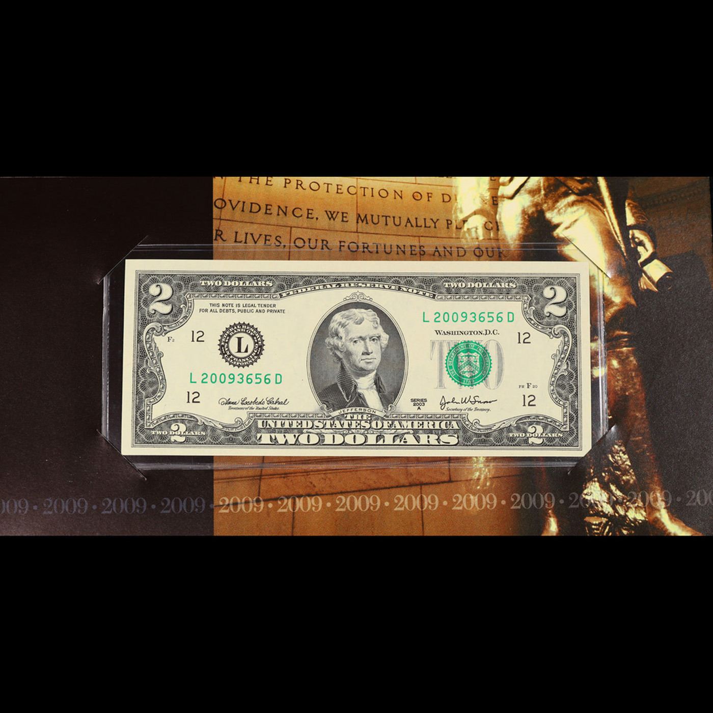2003A $2 Federal Reserve Note, Uncirculated 2009 BEP Folio Issue (San Francisco, CA) Grades Gem CU.