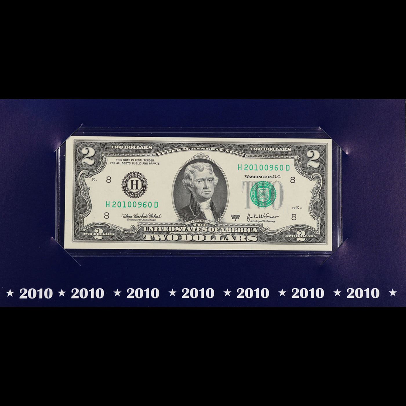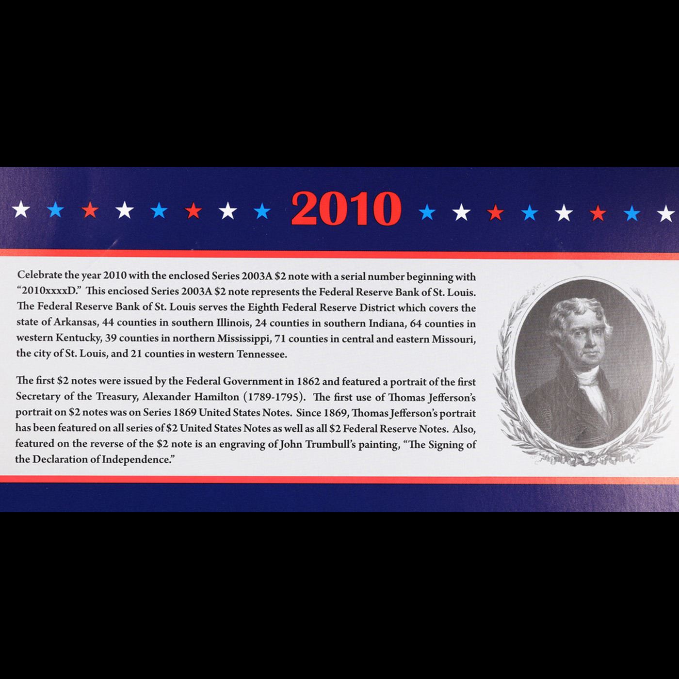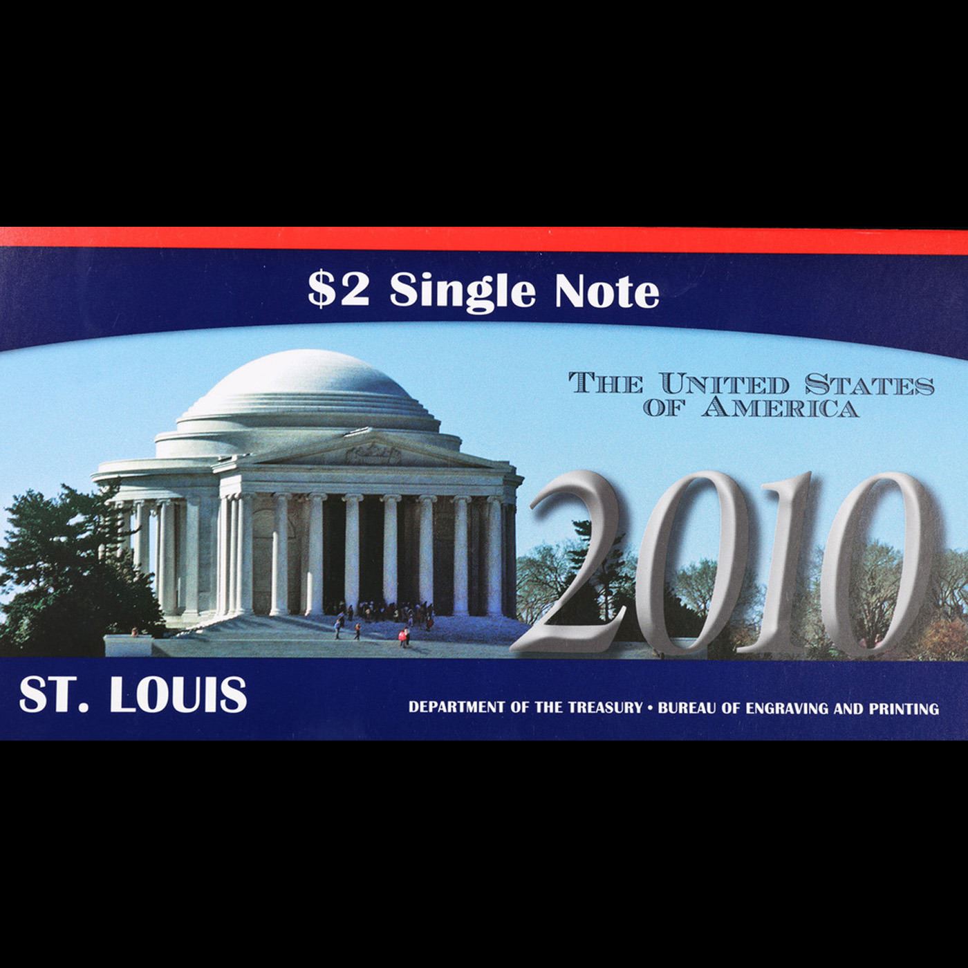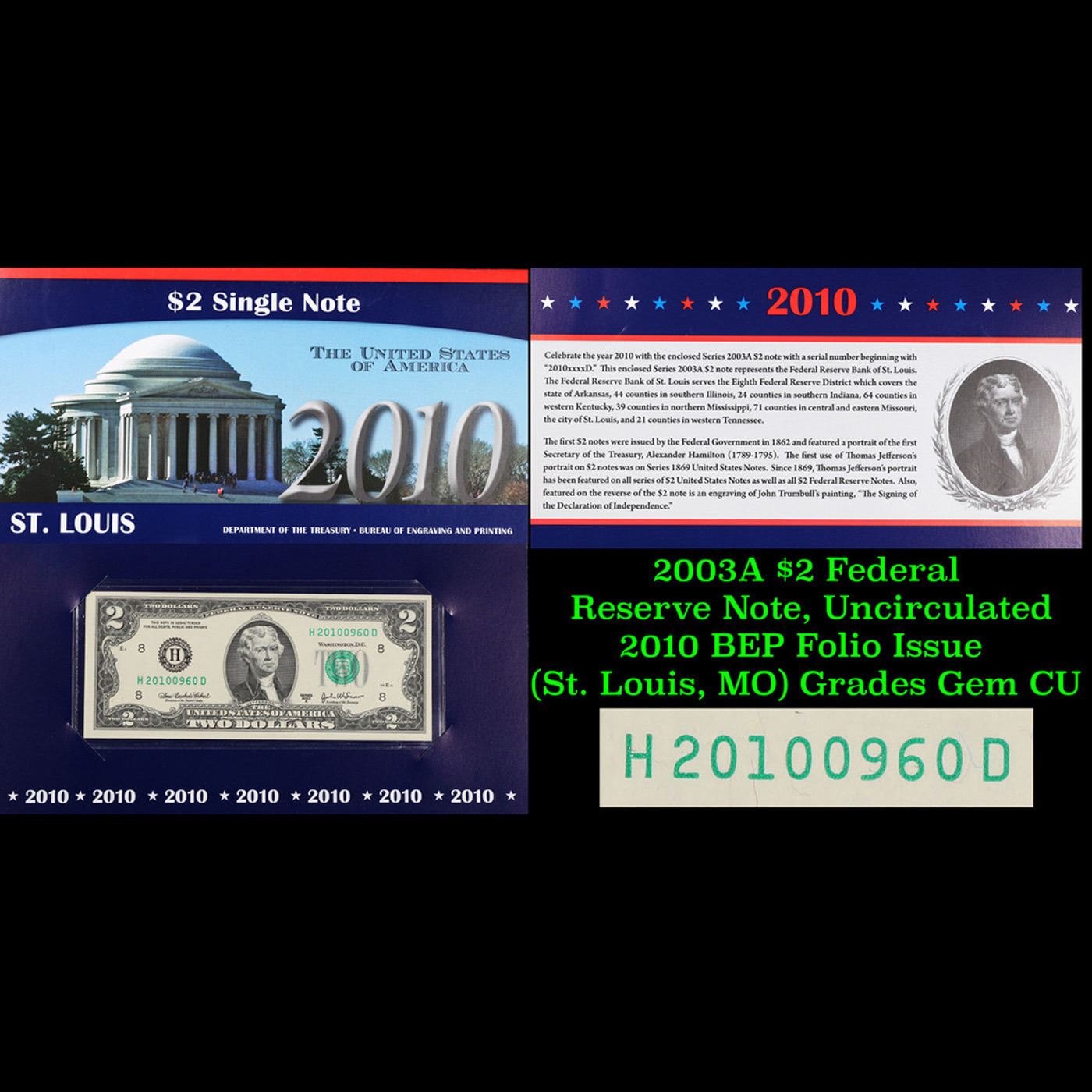 2003A $2 Federal Reserve Note, Uncirculated 2010 BEP Folio Issue (St. Louis, MO) Grades Gem CU