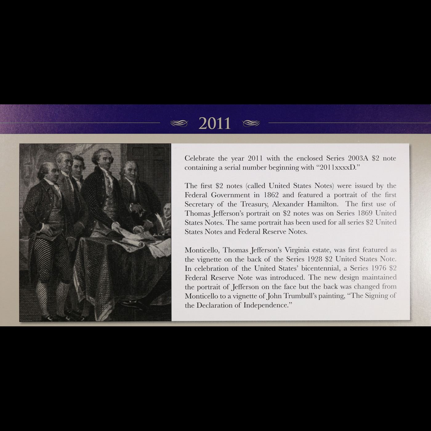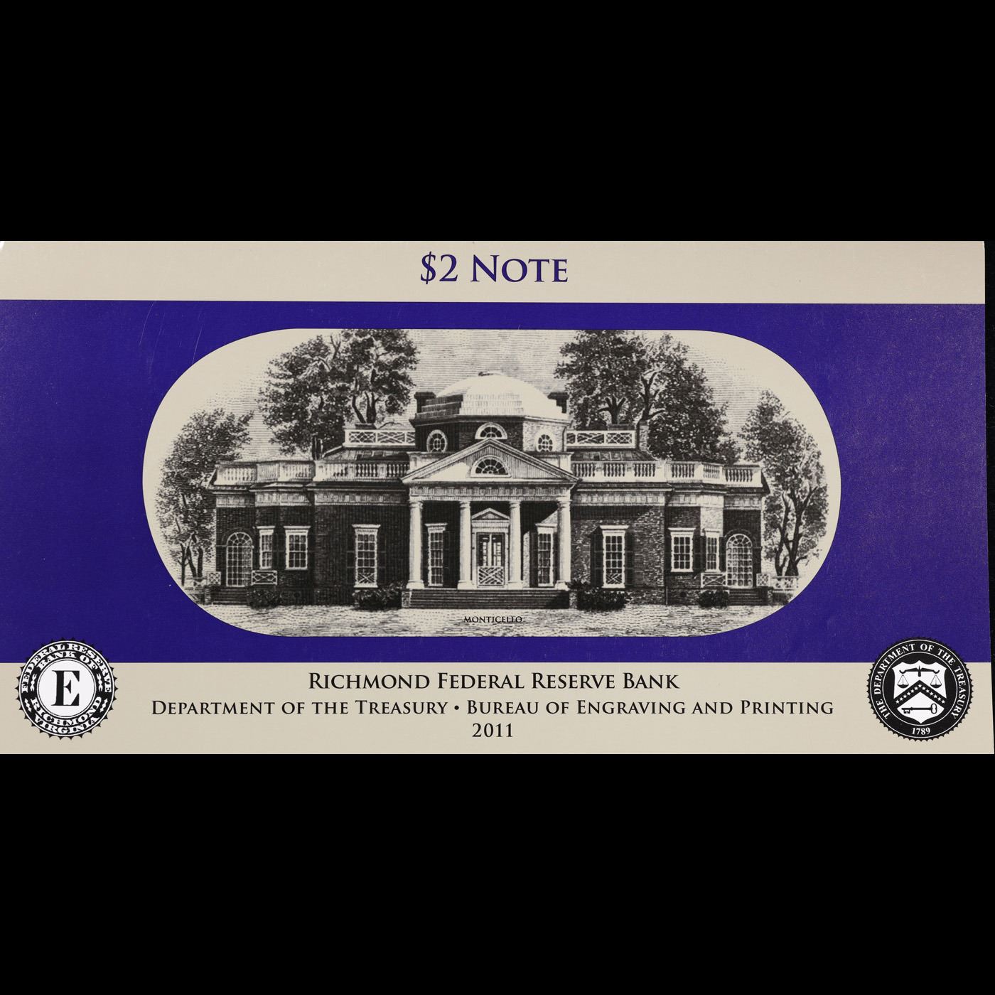 2003A $2 Federal Reserve Note, Uncirculated 2011 BEP Folio Issue (Richmond, VA) Grades Gem CU