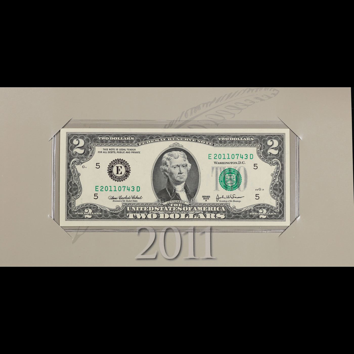 2003A $2 Federal Reserve Note, Uncirculated 2011 BEP Folio Issue (Richmond, VA) Grades Gem CU.