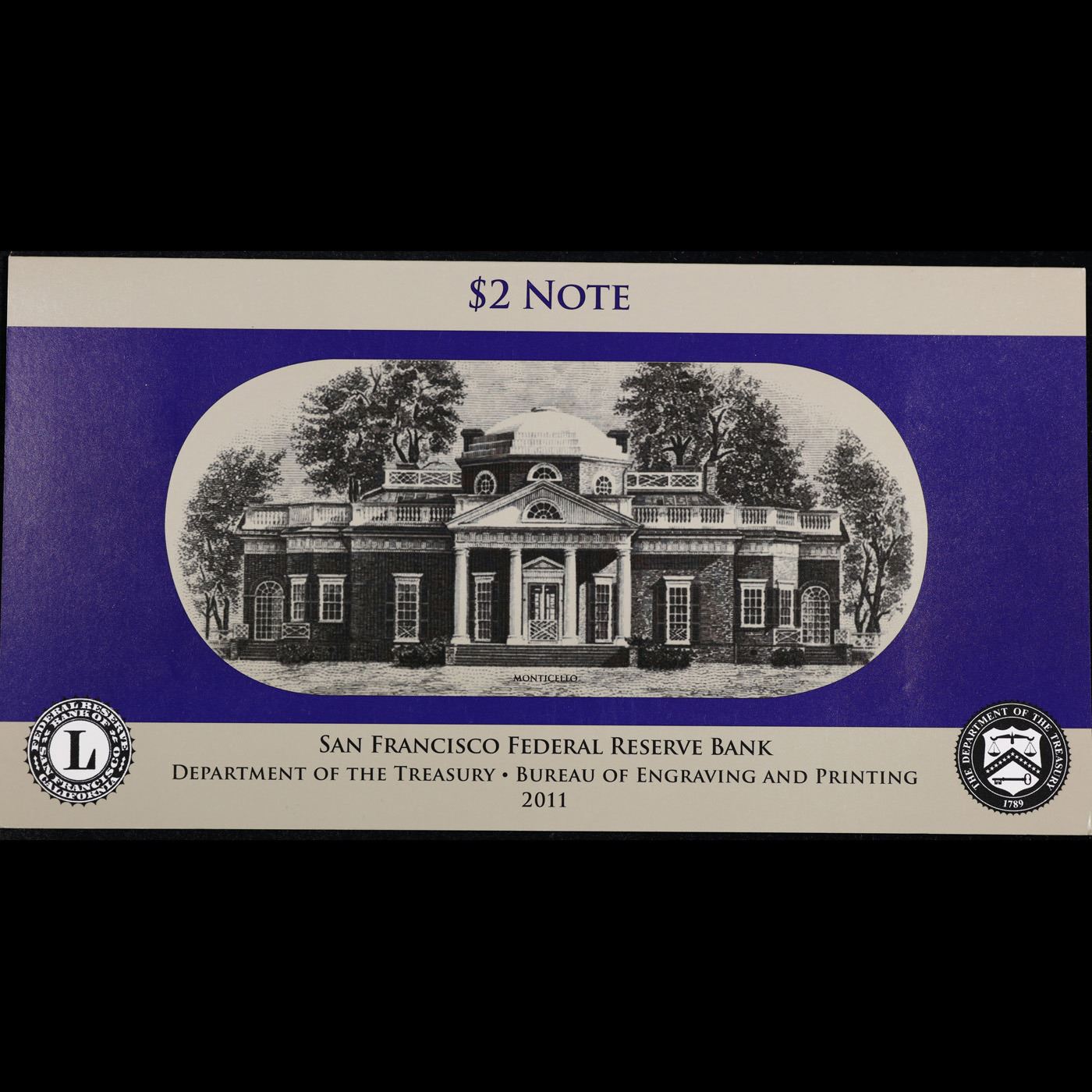 2003A $2 Federal Reserve Note, Uncirculated 2011 BEP Folio Issue (San Francisco, CA) Grades Gem CU.