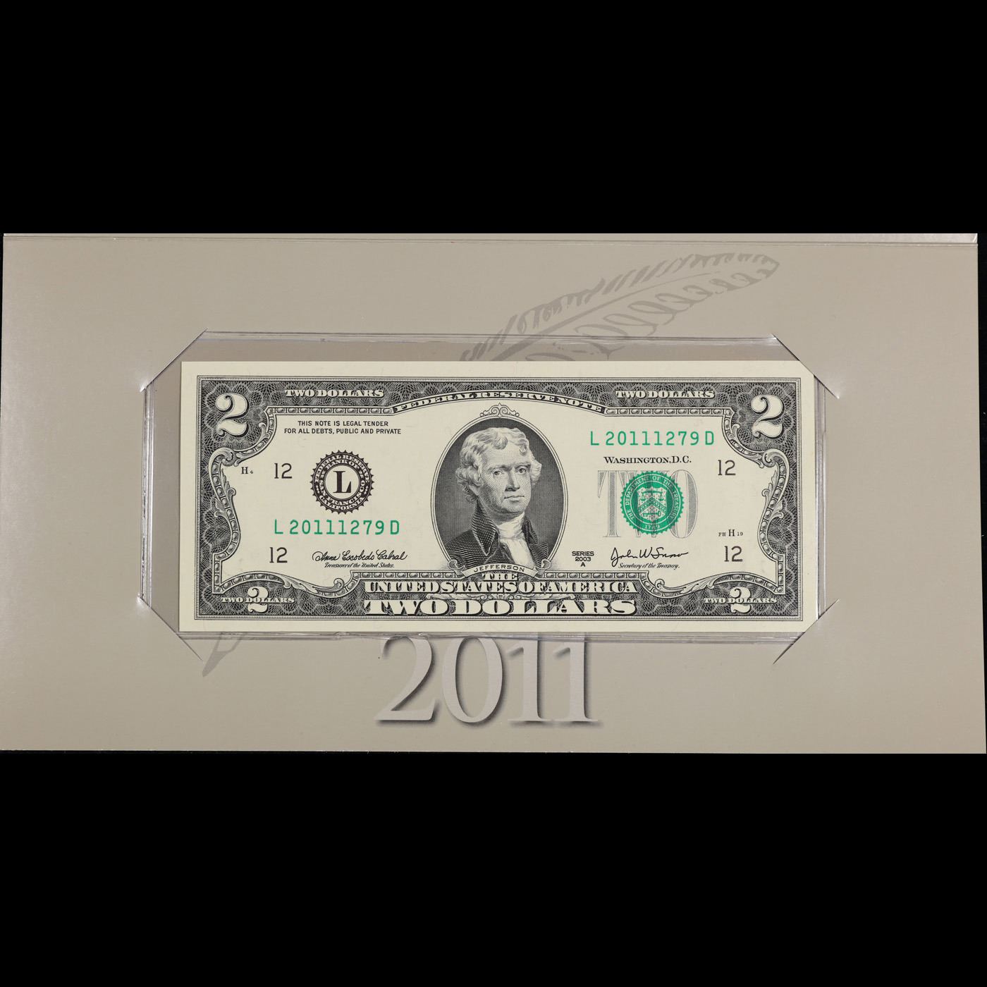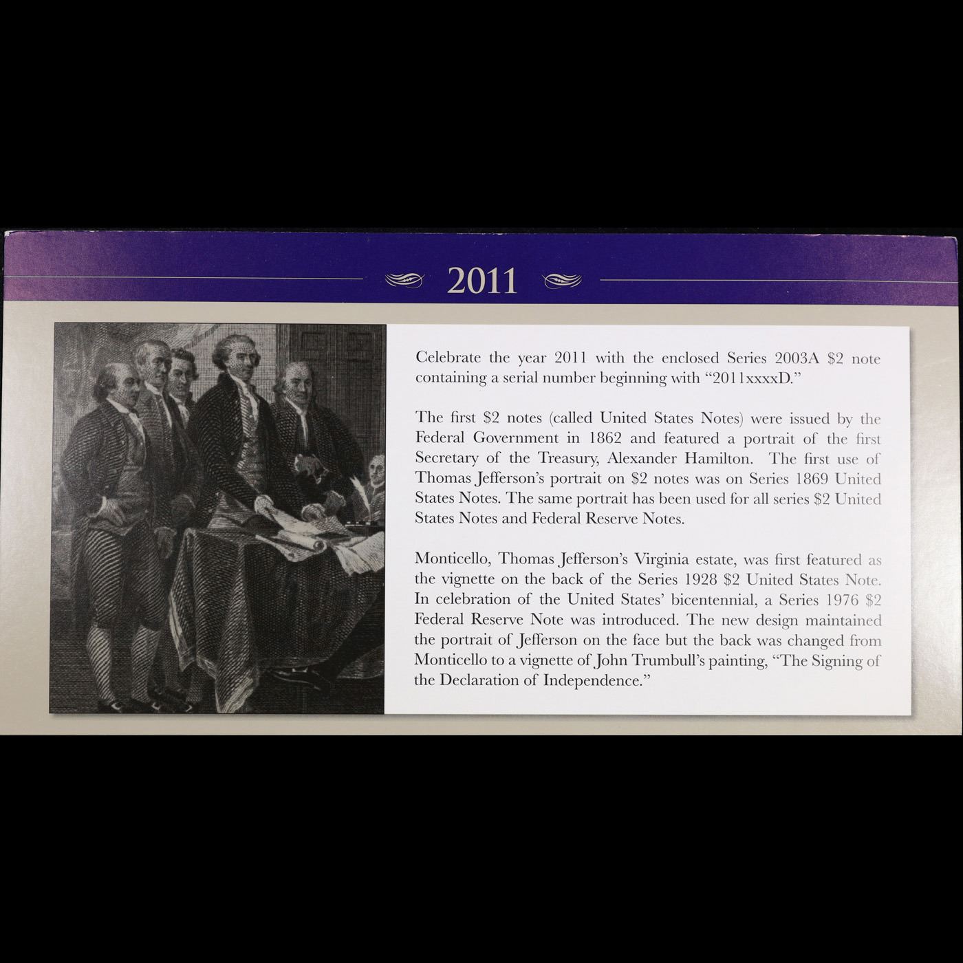 2003A $2 Federal Reserve Note, Uncirculated 2011 BEP Folio Issue (San Francisco, CA) Grades Gem CU