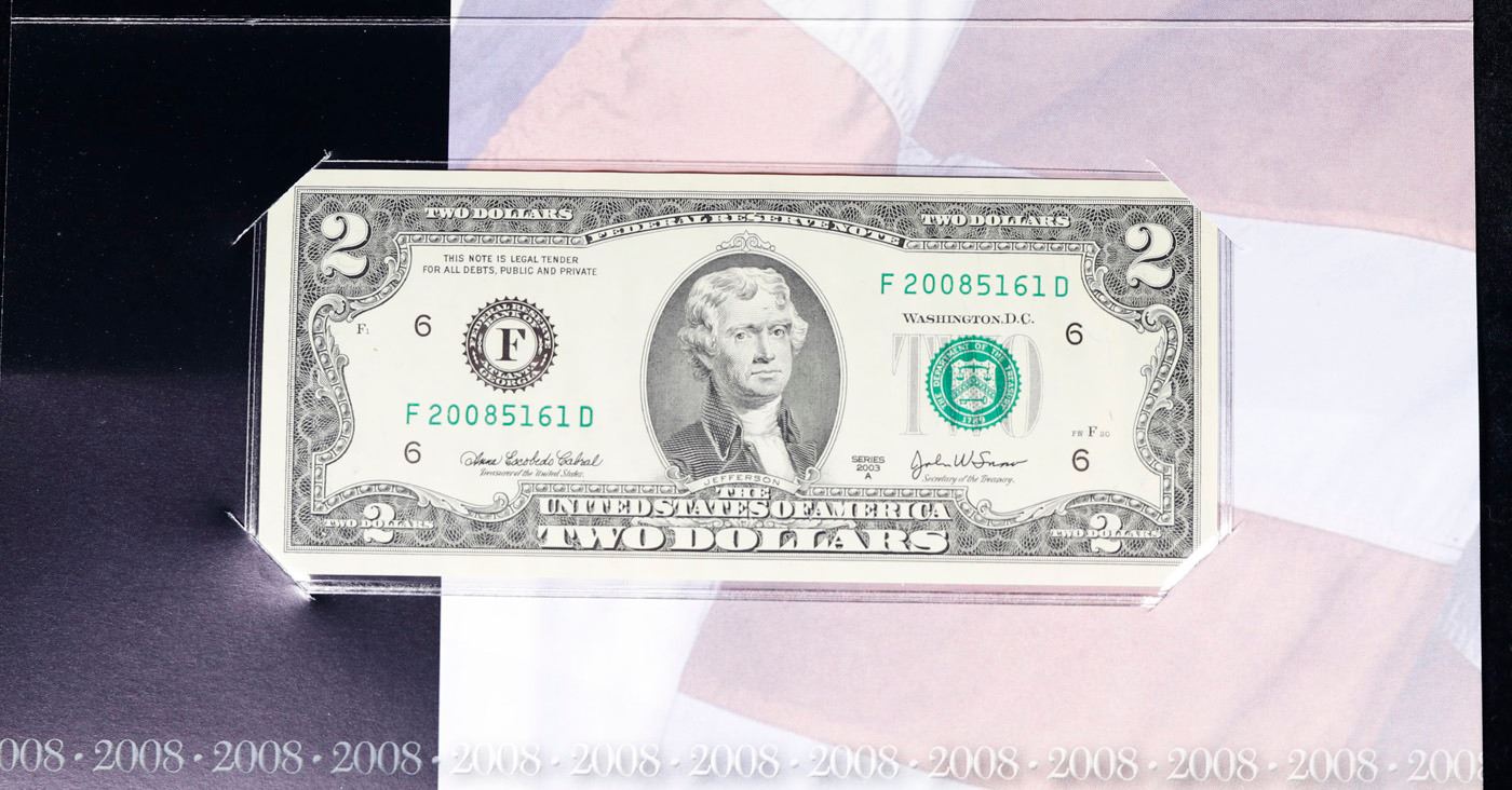 2003A $2 Federal Reserve note in Atalnta, Depaertment of the Treasury-Bureau of Engraving and Printi