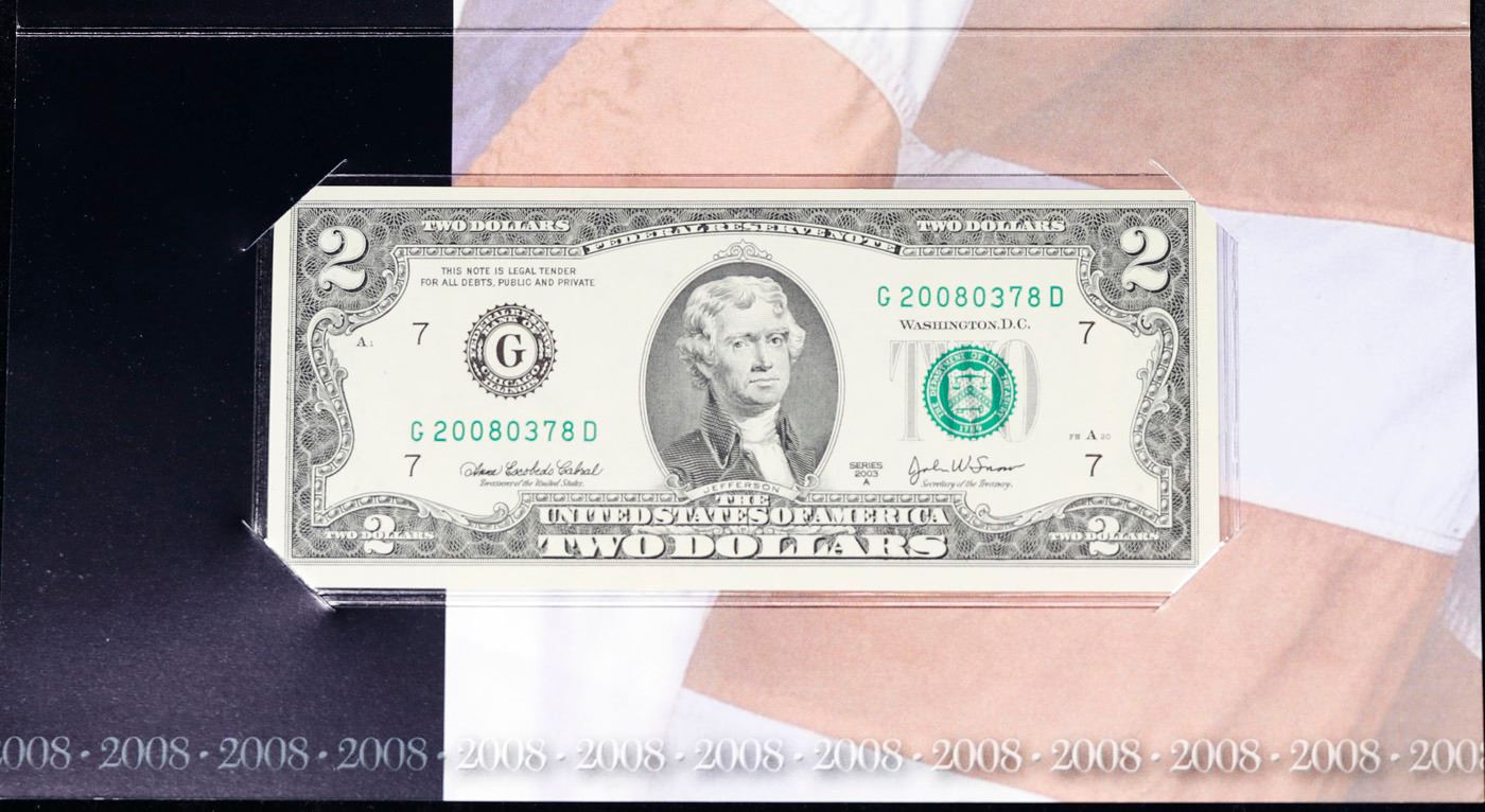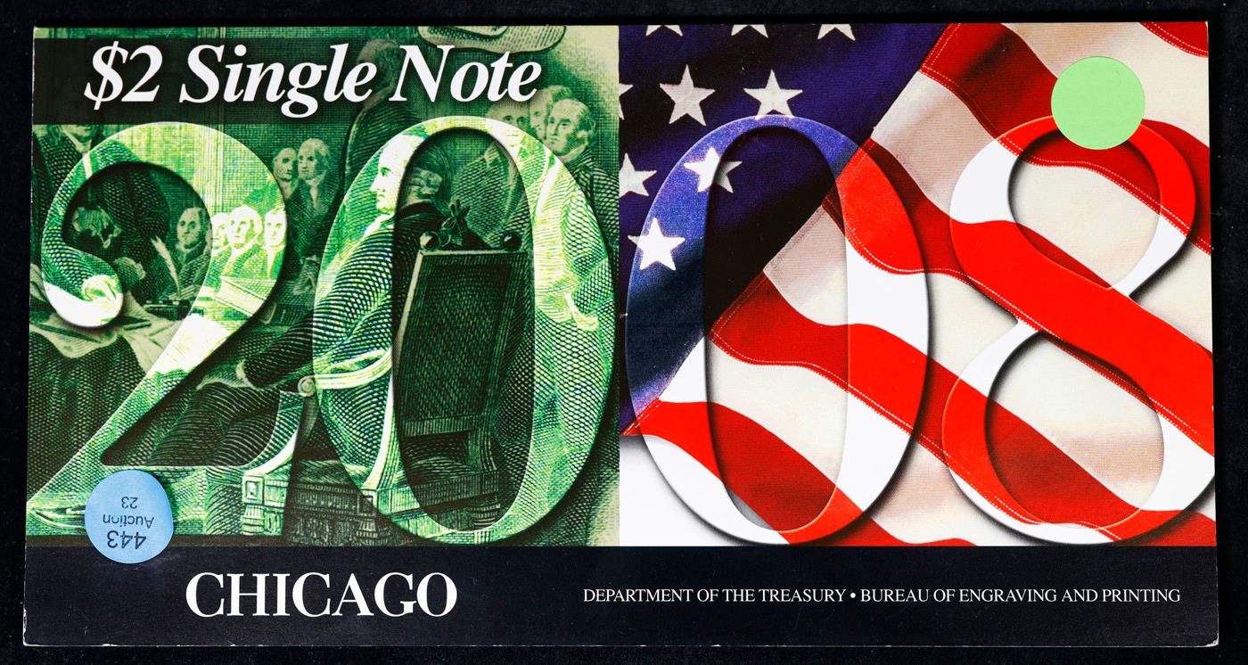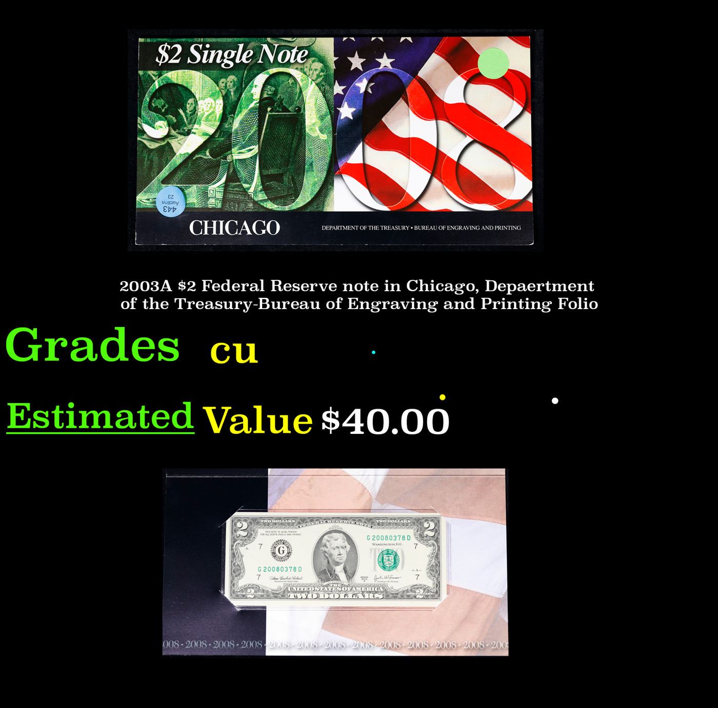 2003A $2 Federal Reserve note in Chicago, Depaertment of the Treasury-Bureau of Engraving and Printing Folio Grades CU.