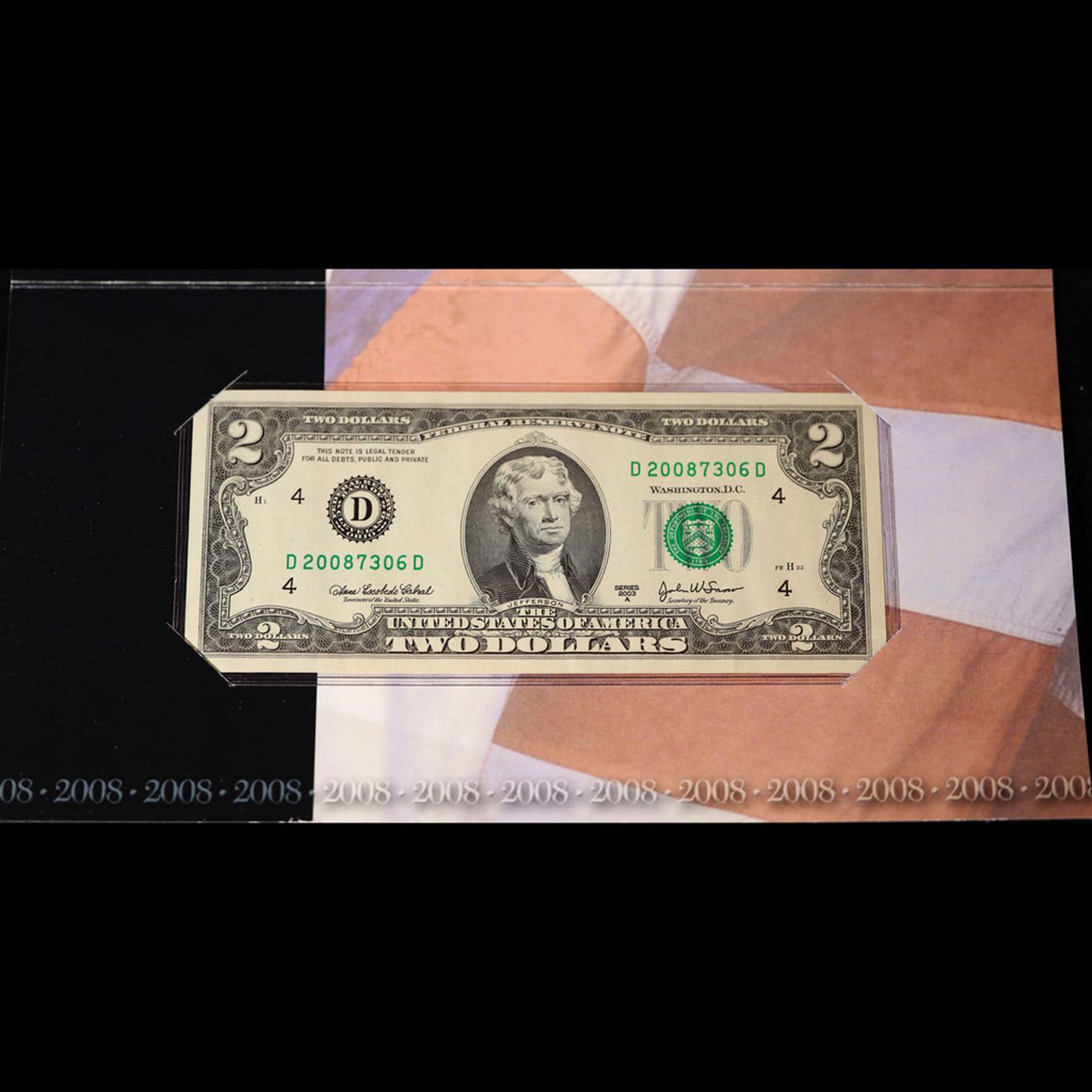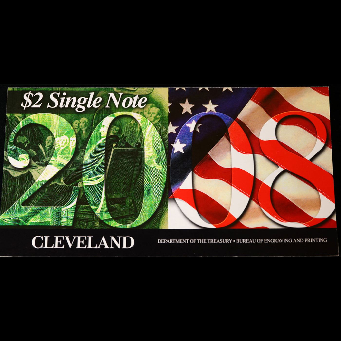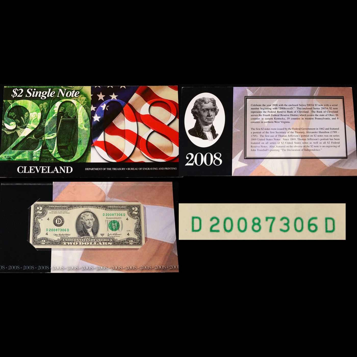 2003A $2 Green Seal Federal Reserve Note (Cleveland, OH) In 2008 Series Department of Treasury Envelope Grades cu. Celebrate the year 2008 with the enclosed Series 2003A $2 note with a serial number beginning with "2008xxxxD." This enclosed Series 2003A $2 note represents the Federal Reserve Bank of Cleveland.