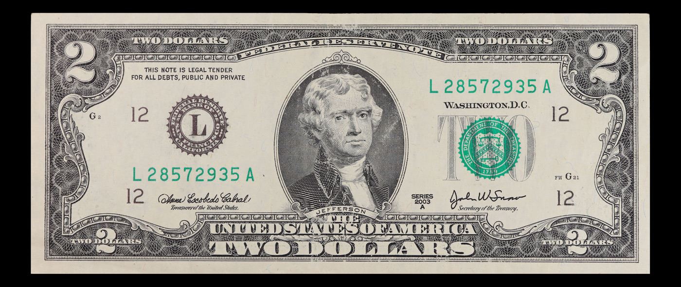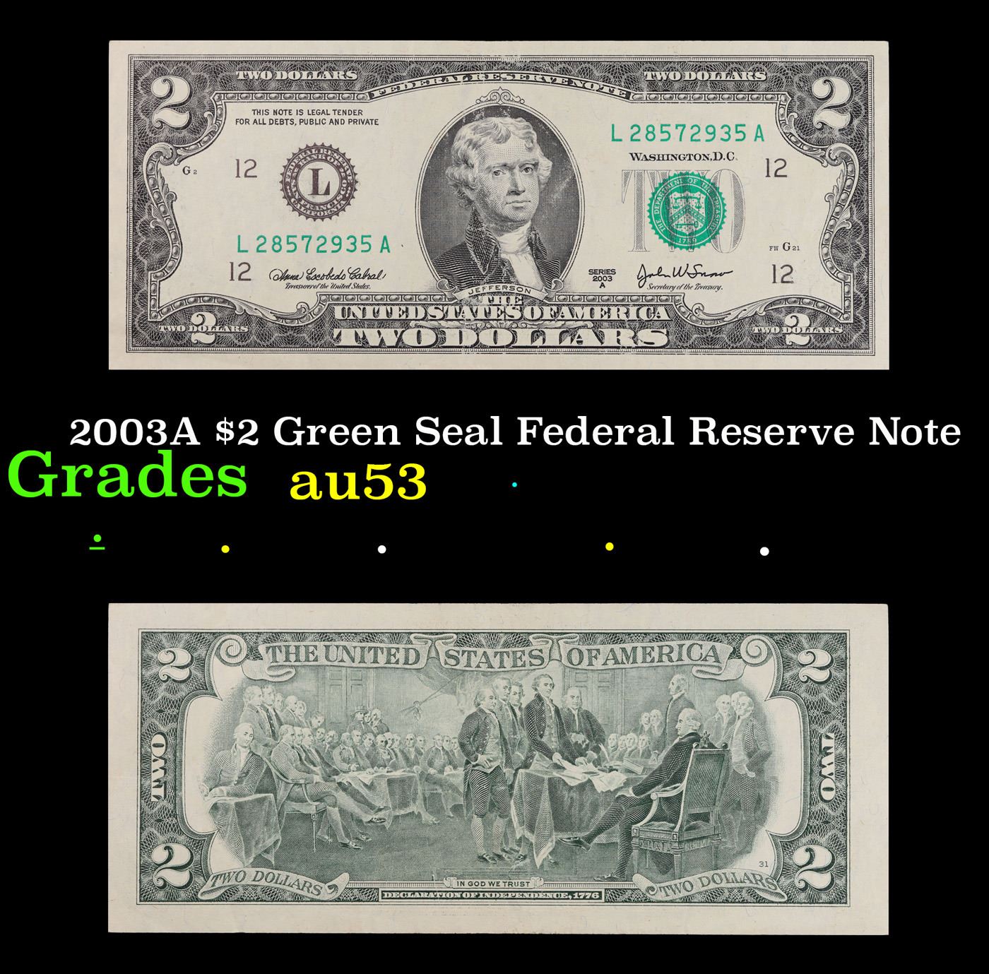 2003A $2 Green Seal Federal Reserve Note Grades Select AU.