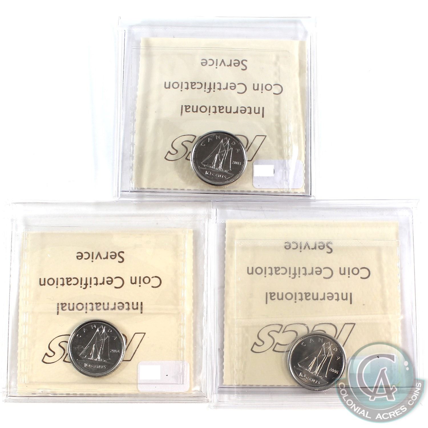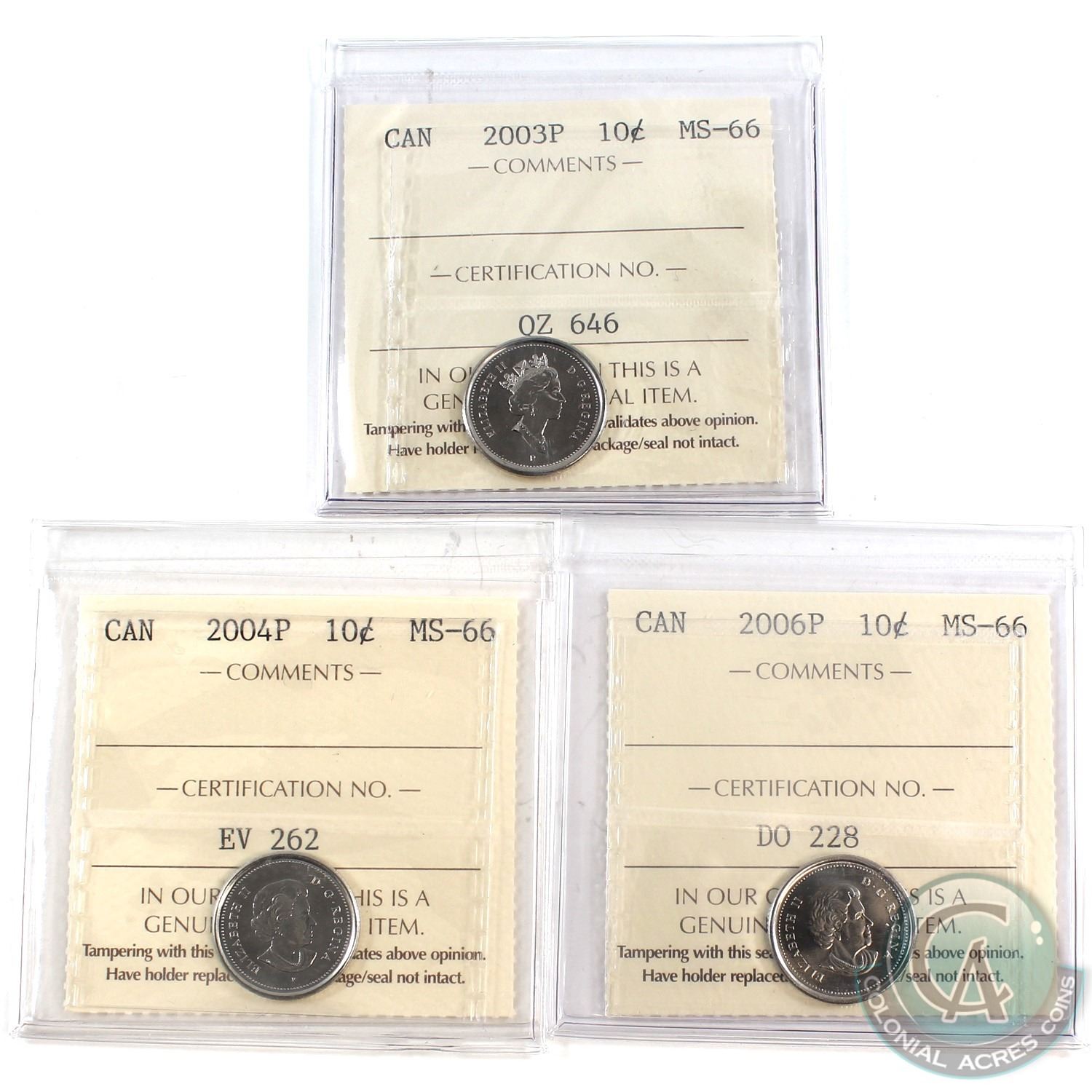 2003P, 2004P & 2006P Canada 10-cent ICCS Certified MS-66. 3pcs