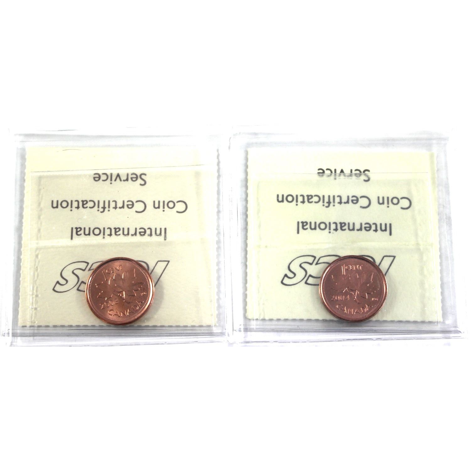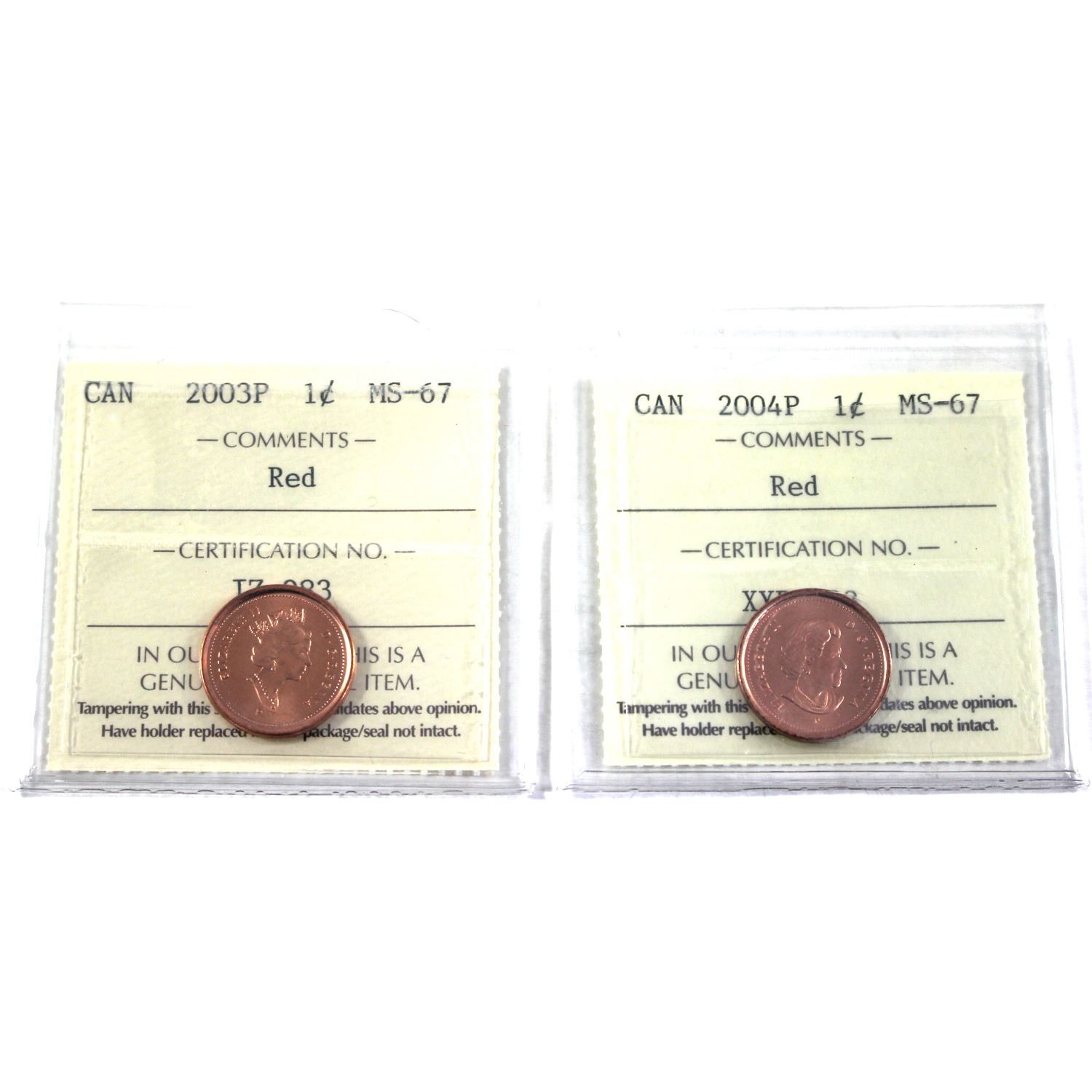 2003P & 2004P Canada 1-cent ICCS Certified MS-67, Red. 2pcs