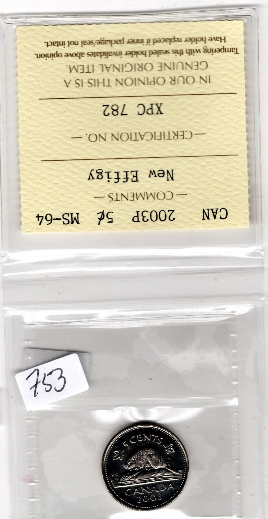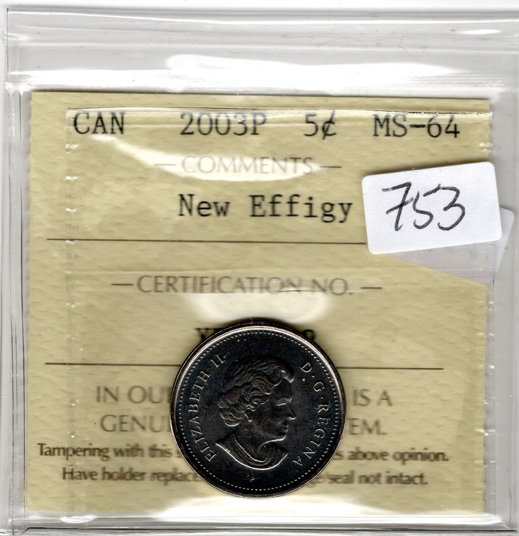 2003P 5 CENT MS64 NEW EFFIGY ICCS CERT