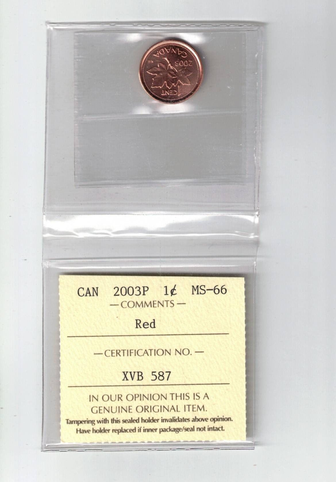 2003P Canada 1¢; Red, Certified ICCS MS66