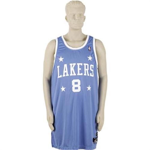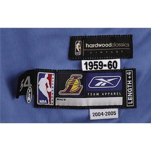 <B>2004-05 Kobe Bryant Game Worn Throwback Jersey.</B></I> Kobe notched his fourth triple-double of the season on December 17, 2004, the day he wore this powder blue 1959-60 Minnesota Lakers throwback jersey in a loss to the Wizards. With these faux vintage jerseys all the rage in urban apparel, owning the real deal (well, at least a genuine gamer) will be a tremendous boost to your "street cred." "Lakers 8" is sewn to the chest, along with a frame of four stars, in white tackle twill. "Bryant 8" appears on verso. The standard "Reebok Lakers Exclusivity" label in the tail, with flap tags reading "54, 2004-2005, Length +4." Above is tagging related to the throwback styling, with "Hardwood Classics" label and "1959-60" year flap. Wear is understandably light for a single game's wear. A special Kobe gamer that will set your collection apart from the norm. <I>LOA from Lou Lampson.</B></I> <BR><BR><B>Important notice:</B> Heritage usually auctions material at the rate of 200-250 lots per hour. On some occasions eBay Live bid software or the Internet may not be able to keep up with the pace of the auction. We recommend placing a realistic absentee bid now as insurance to avoid disappointment. Occasionally the auctioneer may eliminate or reject an eBay Live bid, and the auctioneer may also reopen a lot after the close of the eBay live bidding (usually because we missed an audience bid), and may reject your bid even if it shows you as the winning bidder. By bidding via eBay Live, you agree that Heritage may award the lot to another bidder at its sole discretion under the circumstances described above or any other reasonable circumstances. Since eBay bids are not shown to us until we open the lot on the floor, we treat those bids just like floor bids. In most cases the floor responds before the eBay bid is presented to us, due to Internet lag time, so for consistency we have made it a policy that floor bids are always considered first over tie eBay live bids. Also please note that all Heritage lots purchased through eBay Live carry a 22.5% Buyer's Premium. Please make sure you read the Terms and Conditions before you bid. This lot is being auctioned in conjunction with a live floor auction by Heritage Galleries & Auctioneers. All final auction and invoice information will be supplied by Heritage Galleries & Auctioneers, and all other information should be considered preliminary. Lot:19237 <BR><BR><B>Winning Notification and Billing:</B> After the FINAL session in this auction is complete, Heritage will send e-mail and snail mail invoices. This process normally takes several days. All final auction and invoice information will be supplied by Heritage Galleries & Auctioneers, and all other information should be considered preliminary. <BR><BR>This auction will be conducted on a live auction floor and over the Internet through eBay Live. If you choose to place an absentee bid, please take a moment to <font color='#0000ff'><u><a href='http://pages.ebay.com/liveauctions/help/before/laabsentee.html'>learn how eBay Live absentee bidding works</a></u></font><font color='#000000'>