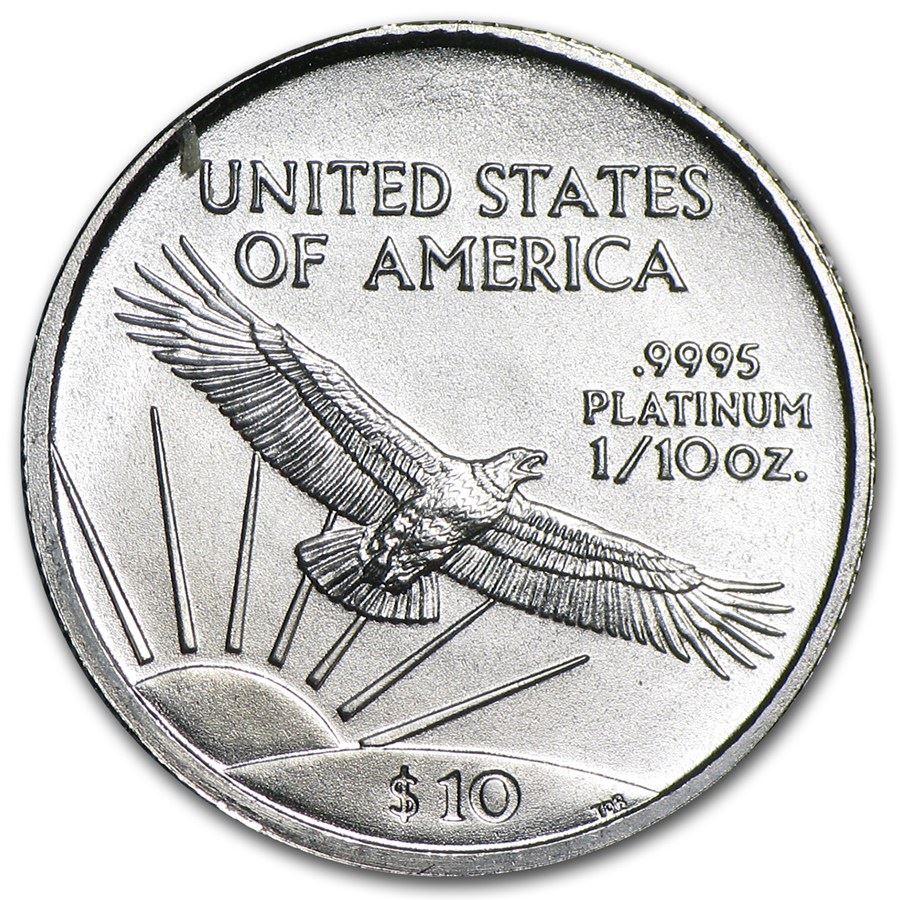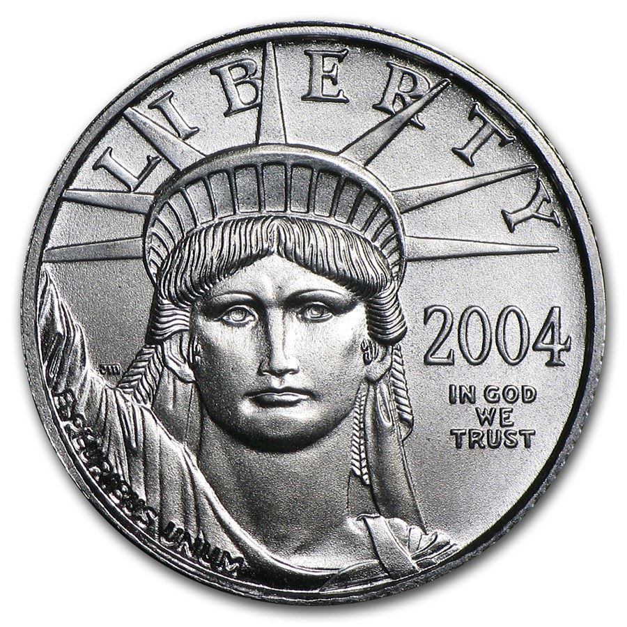 Product ID: 6462 Year: 2004 Grade: Brilliant Uncirculated Grade Service: None Denomination: $10 Mint Mark: None Metal Content: 0.1 troy oz Purity: .9995 Manufacturer: U.S. Mint Thickness: 0.94 mm Diameter: 16.5 mm
