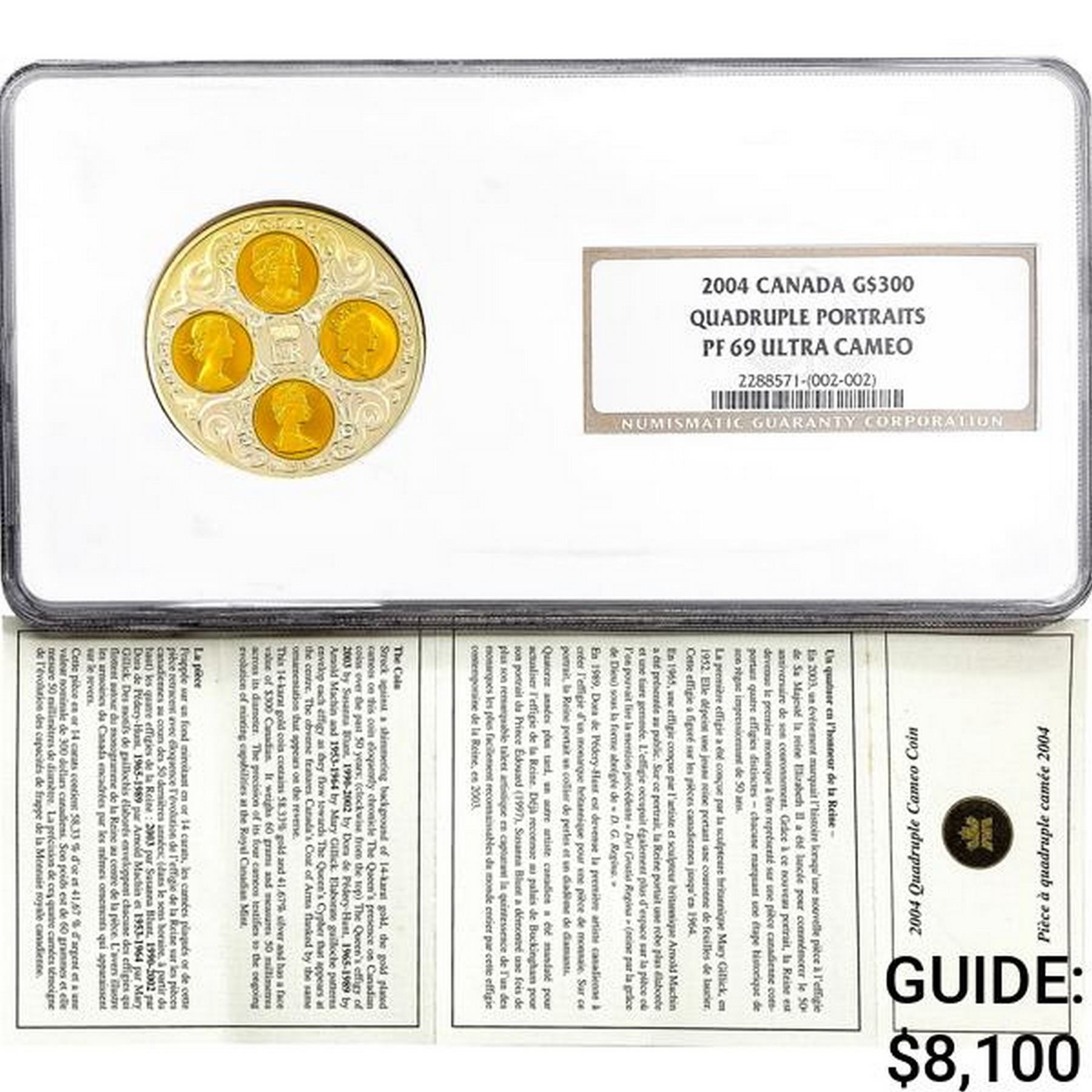 2004 1.125oz. Gold $300 Canada Quad. Portraits NGC PF69 UC