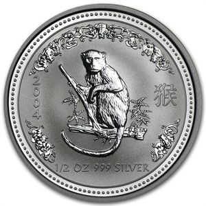 2004 1/2 oz Silver Lunar Year of the Monkey (Series I) **|**|** Year: 2004 ; Mint Mark: Brilliant Uncirculated ; Grade: N/A ; Denomination: 0.5 ; MSRP: $100