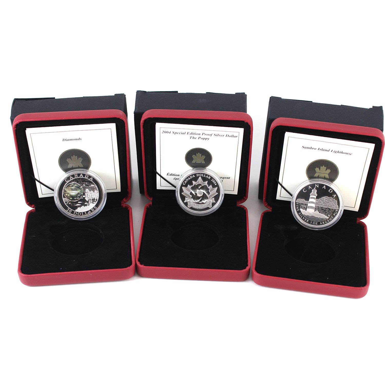You will receive $1 Special Edition Proof Dollar - The Poppy, $20 Sambro Island Lighthouse & $20 Natural Wonders - NWT Diamonds. Capsules are lightly scratched & Sambro sleeve has a tear. (Tax Exempt)