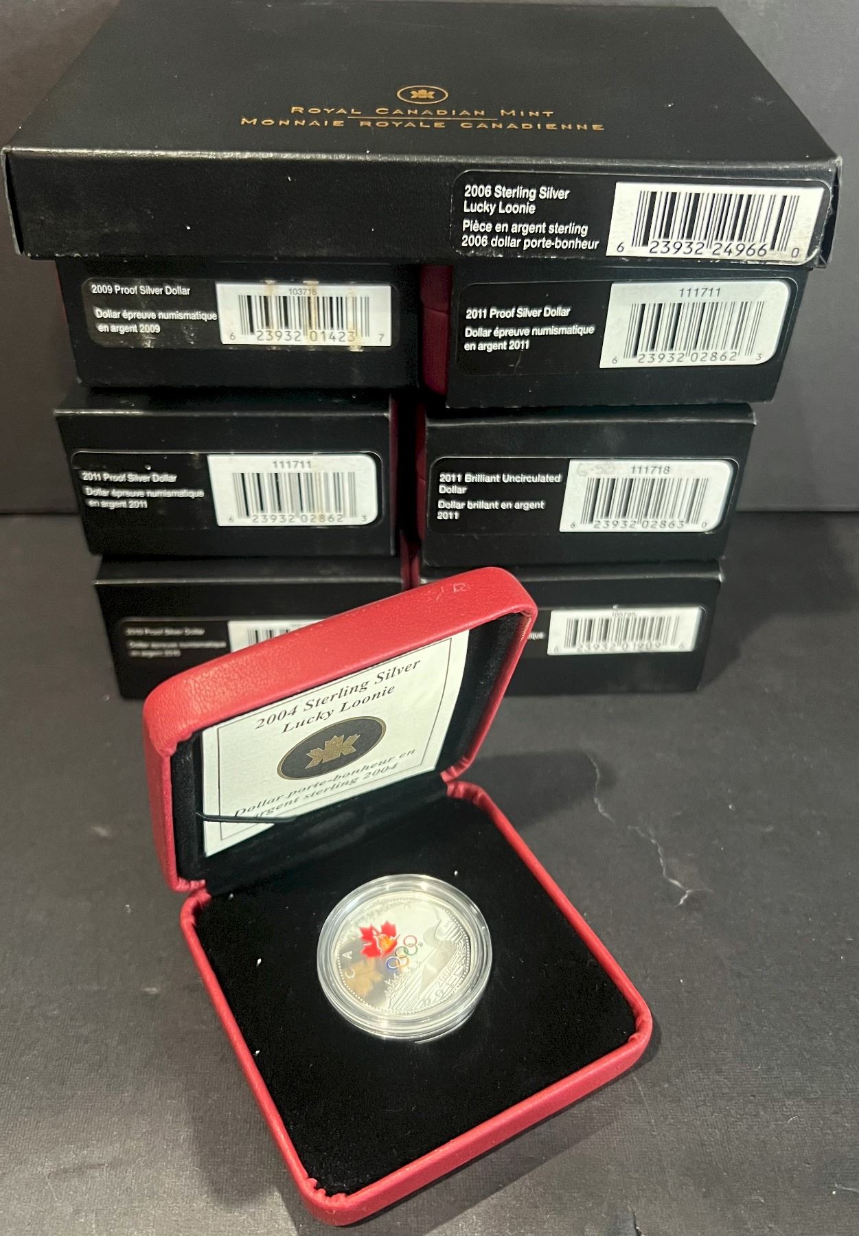 2004 $1, 2006 Lucky Loonie, 2009 to 2011 Proof & Brilliant UNC Dollars. Lot of 8 Pcs.