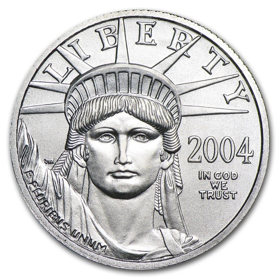 Product ID: 153 Year: 2004 Grade: Brilliant Uncirculated Grade Service: None Denomination: $25 Mint Mark: None Metal Content: 0.25 troy oz Purity: .9995 Manufacturer: U.S. Mint Thickness: 1.32 mm Diameter: 22 mm