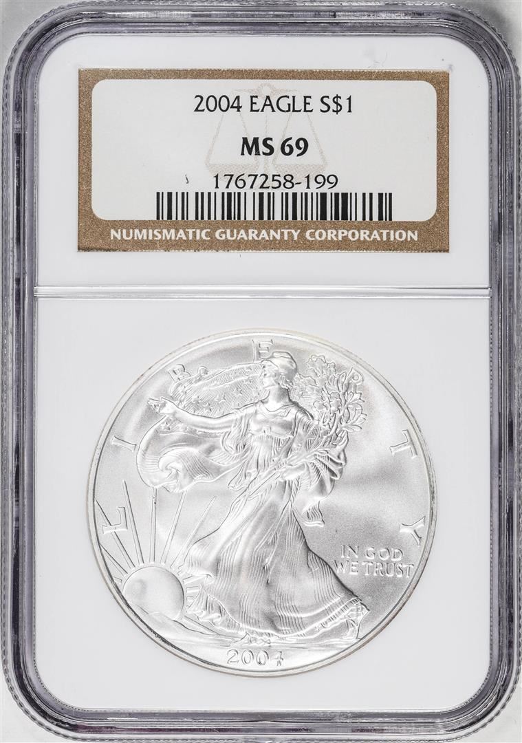 One 2004 $1 American Silver Eagle Coin NGC MS69. NGC Certified.