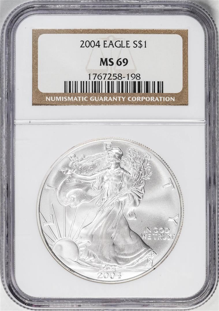One 2004 $1 American Silver Eagle Coin NGC MS69. NGC Certified.