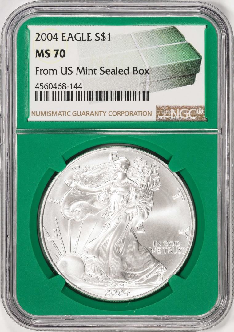 2004 $1 American Silver Eagle Coin NGC MS70 From US Mint Sealed Box Green Core