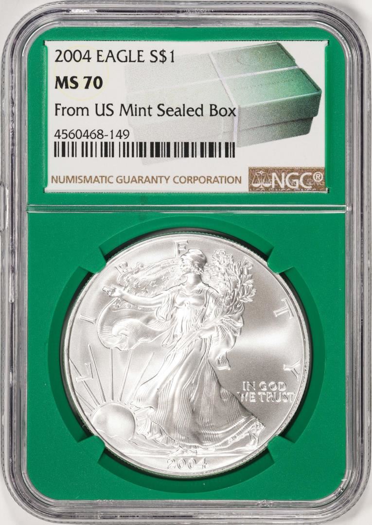 2004 $1 American Silver Eagle Coin NGC MS70 From US Mint Sealed Box Green Core