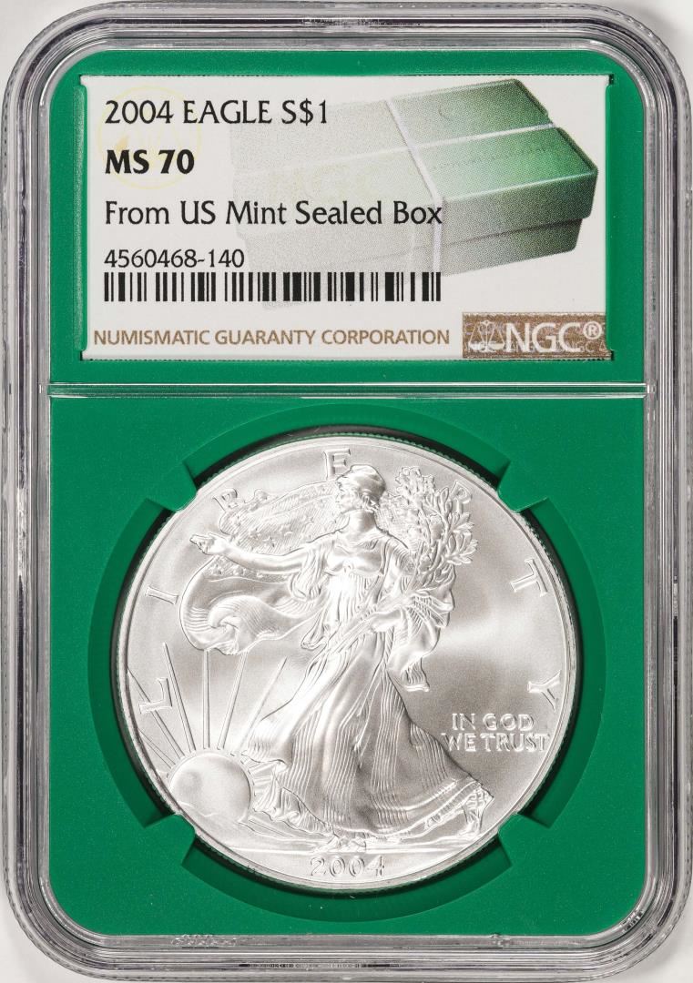 2004 $1 American Silver Eagle Coin NGC MS70 From US Mint Sealed Box Green Core